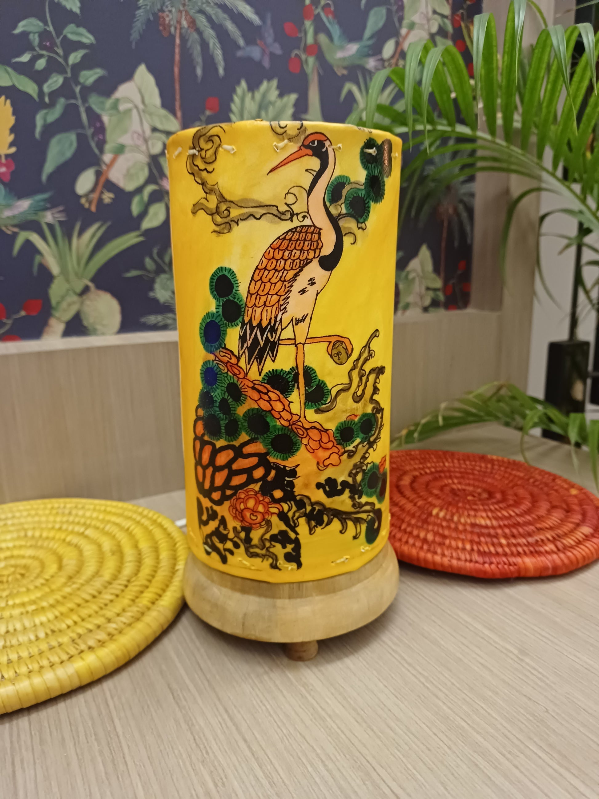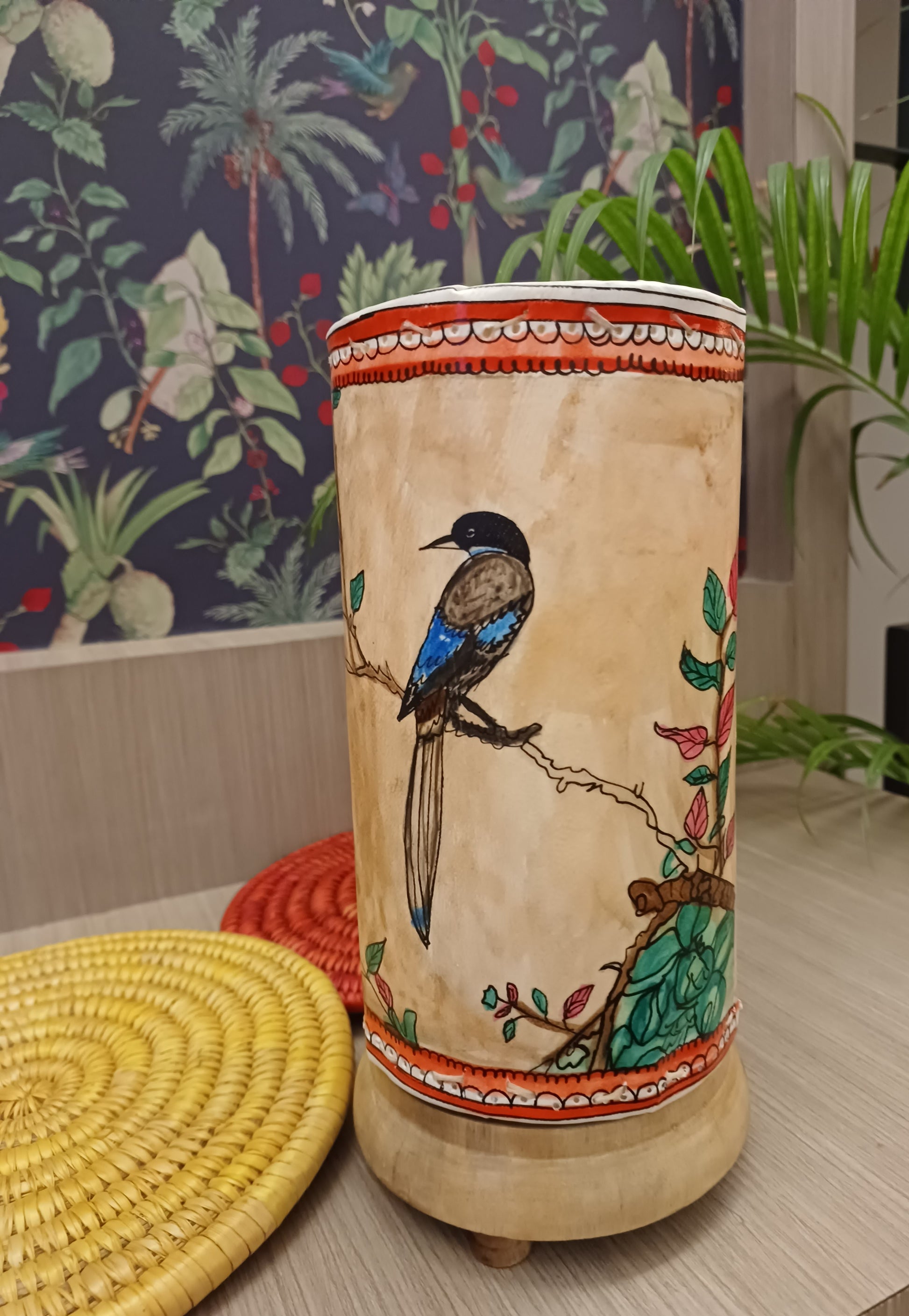 Hand painted & Hand crafted table lamp - 10 inches - Bird Song