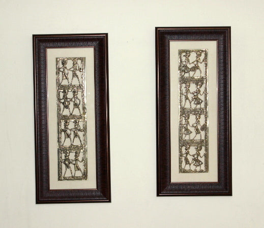 Another must have hand crafted dhokra panel by our partners. This wall mounted frame with its tribal Saura motifs is perfect for the space constrained Mumbai houses as it fits beautifully on a thin vertical wall. Can be also put up as a set of 2 frames set assymetrically.