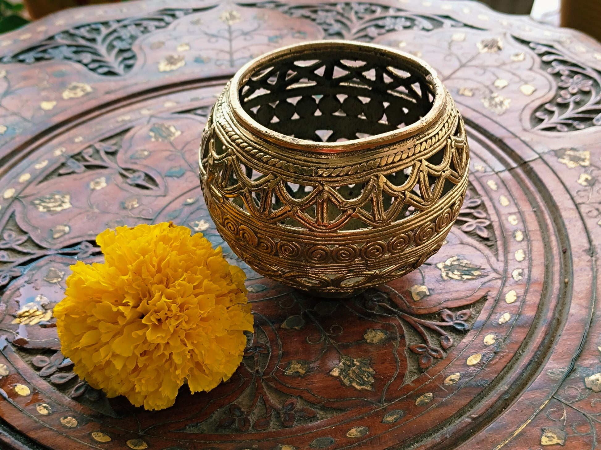 Advaita Handicrafts Brass Jali Pen stand cum Tea light holder