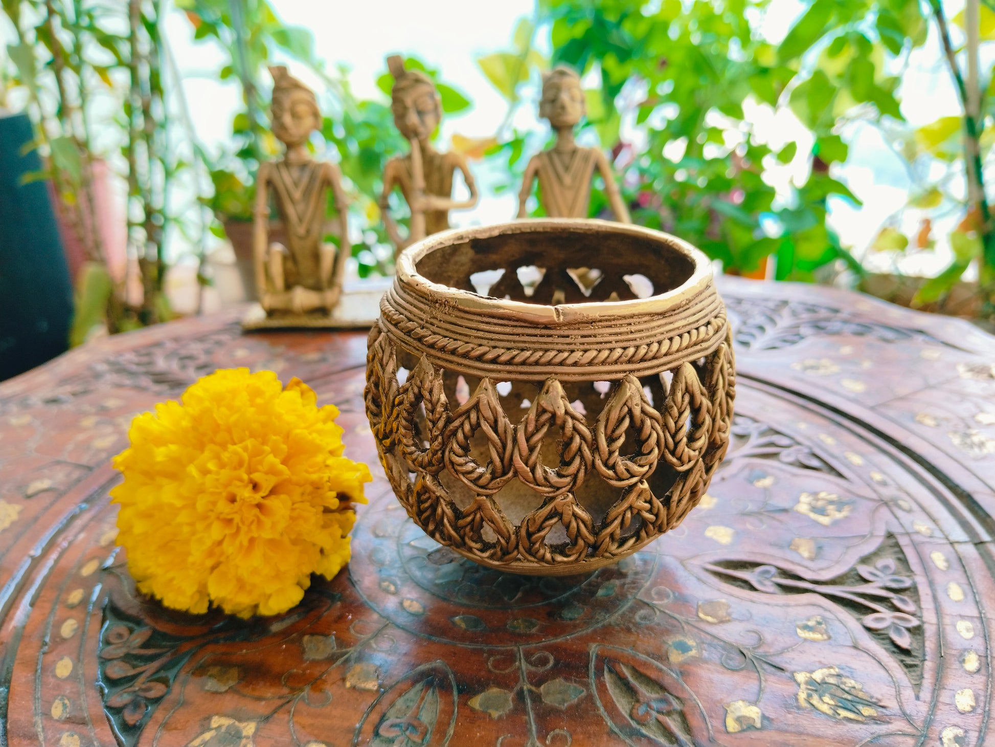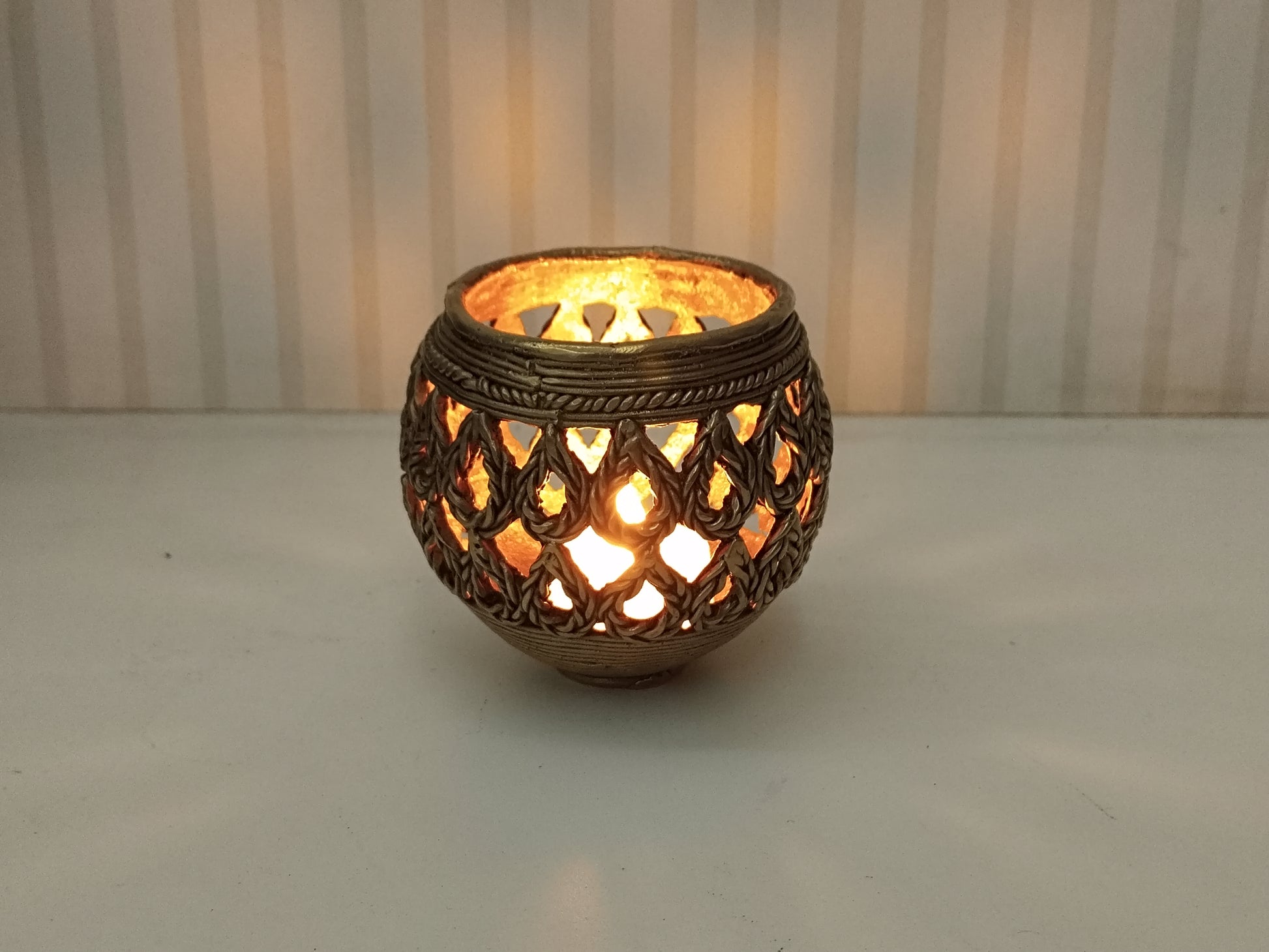 Advaita Handicrafts Brass Jali loop themed Pen stand cum Tea light holder