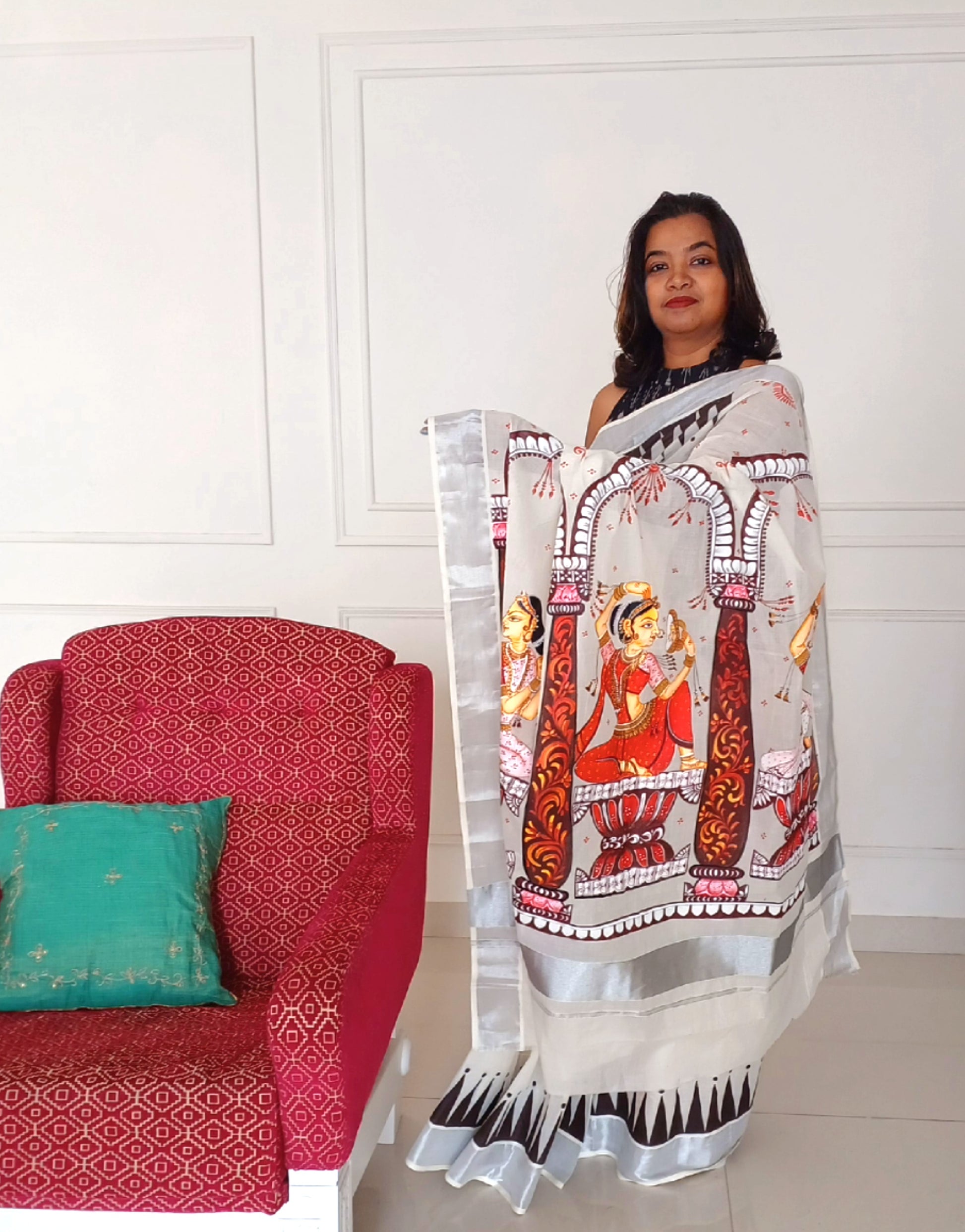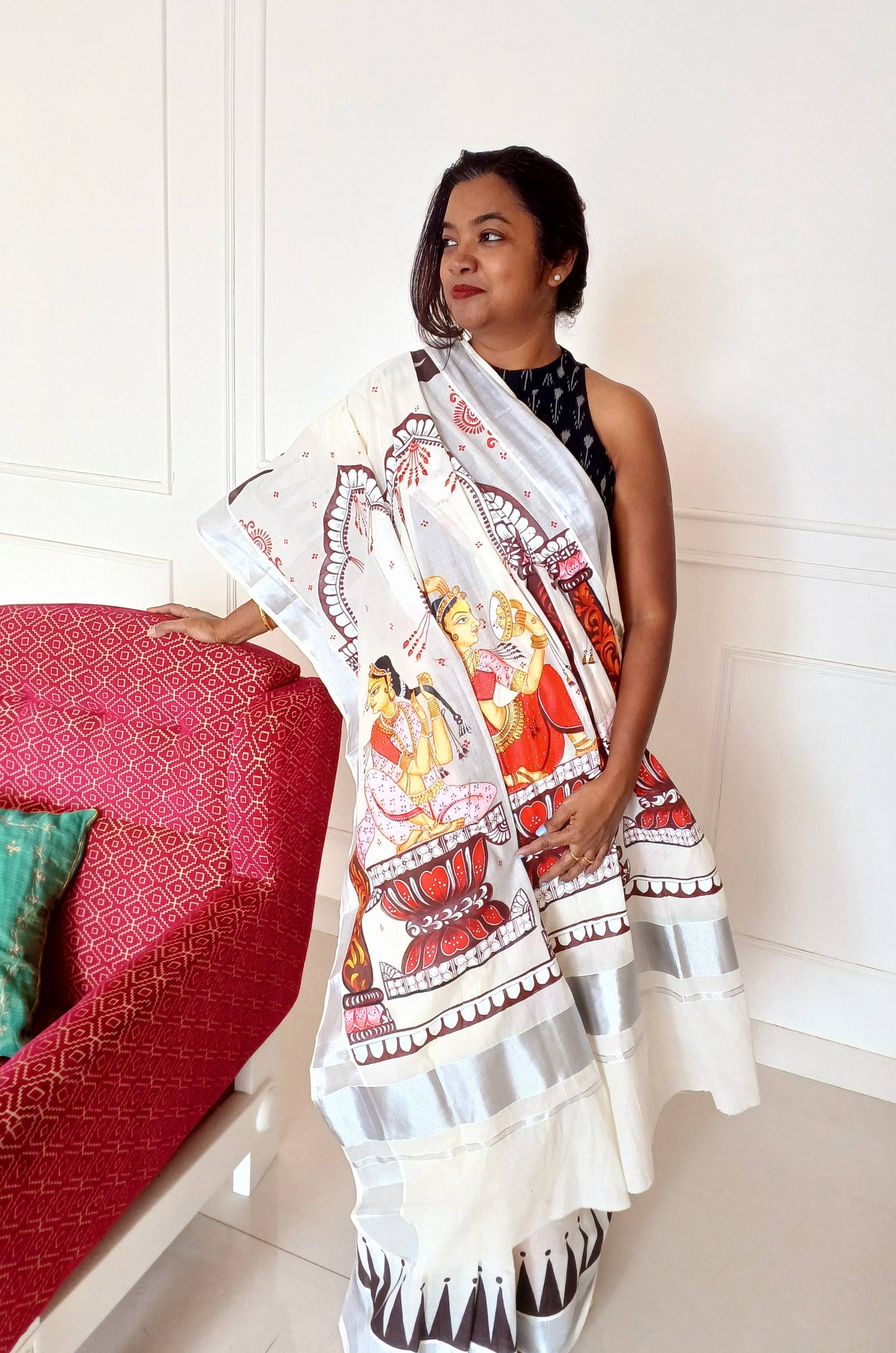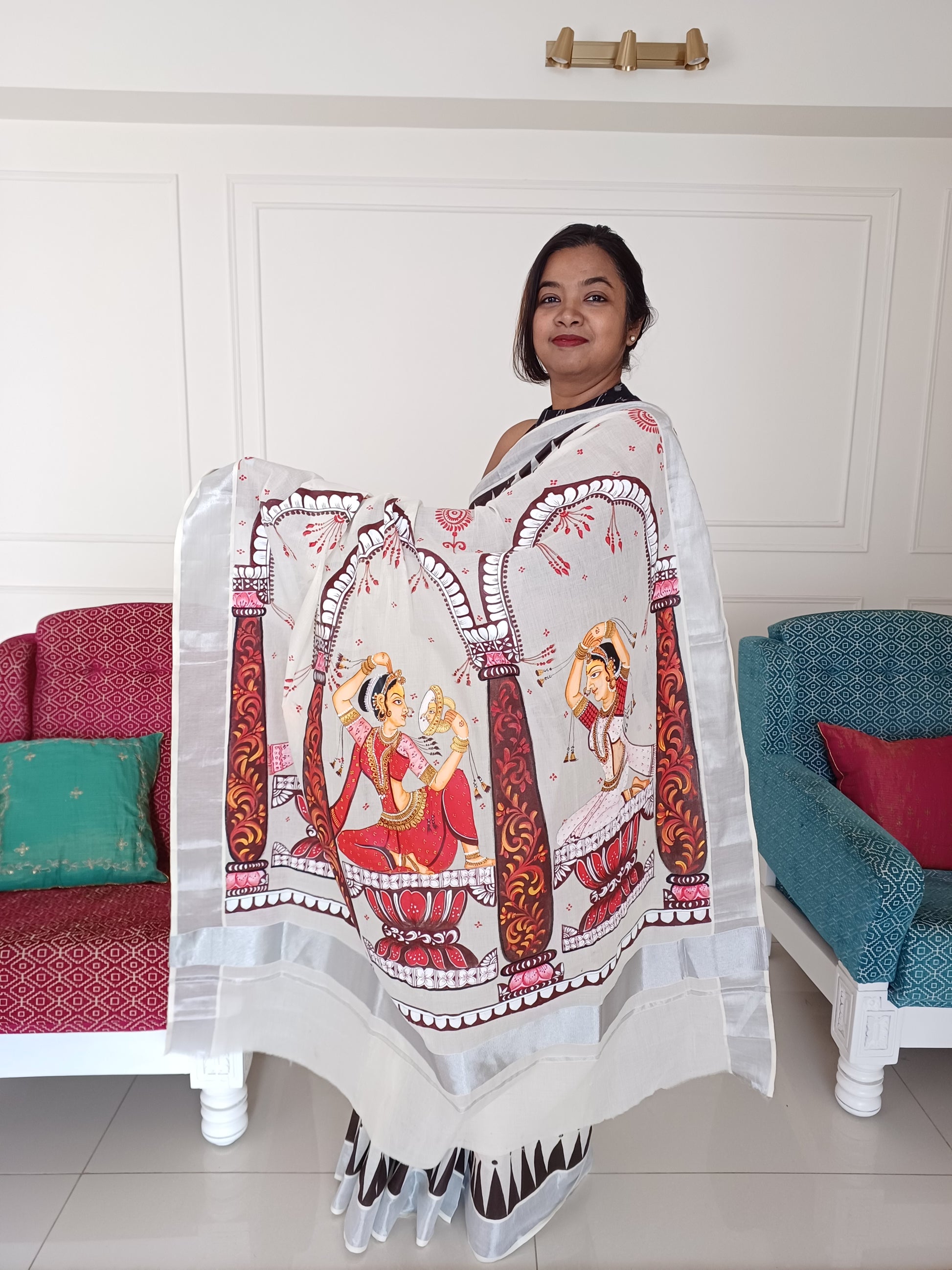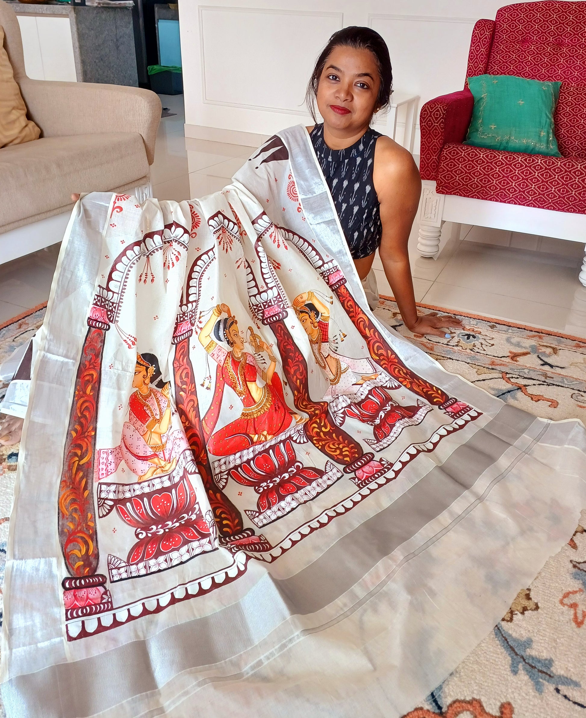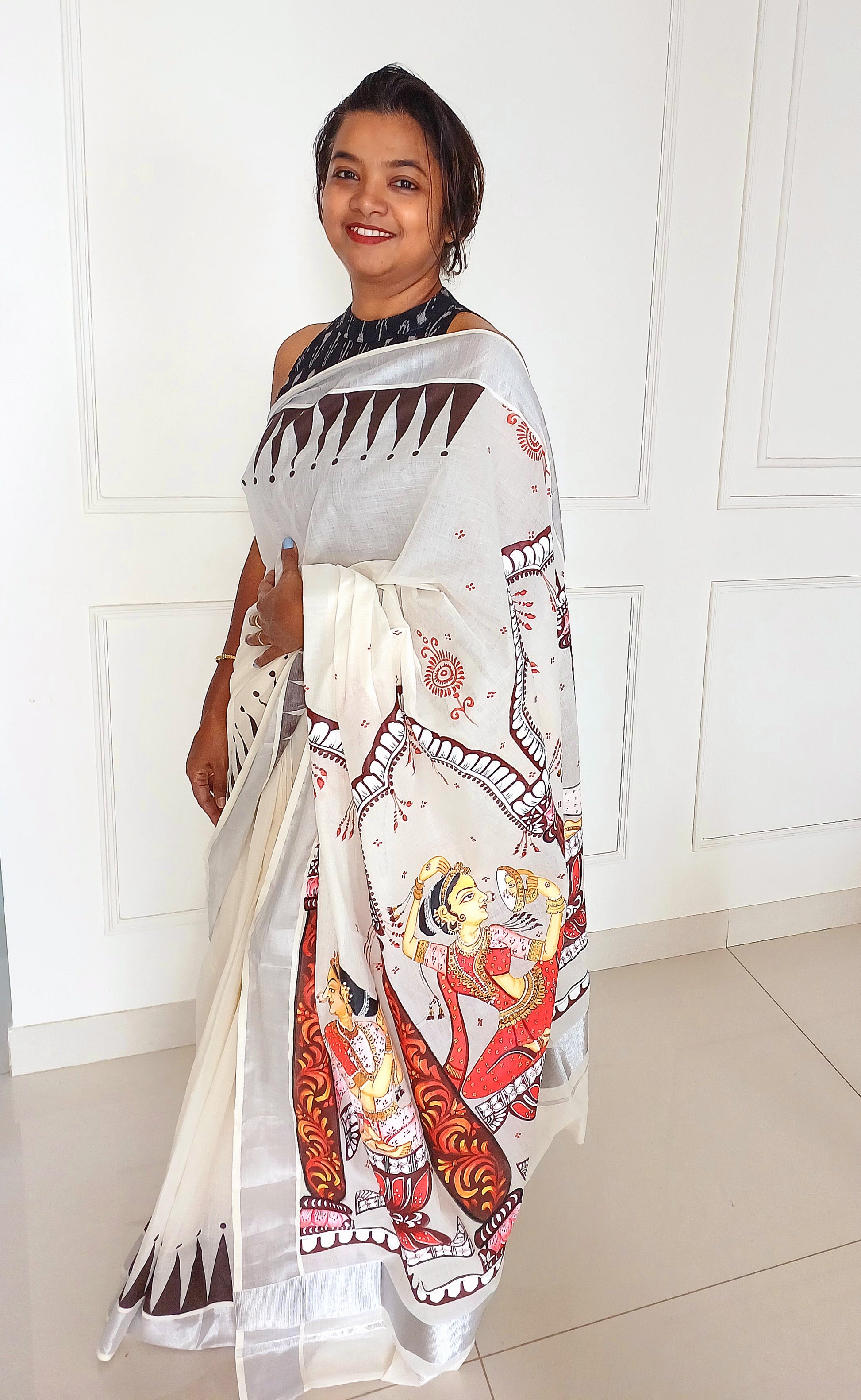 Handpainted Shringaar Raas Saree on Kerala Cotton