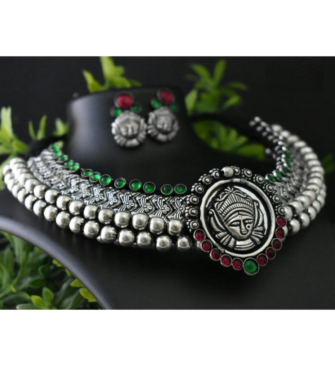 Advaita Handicrafts german silver heavy choker - Temple Jewelery.