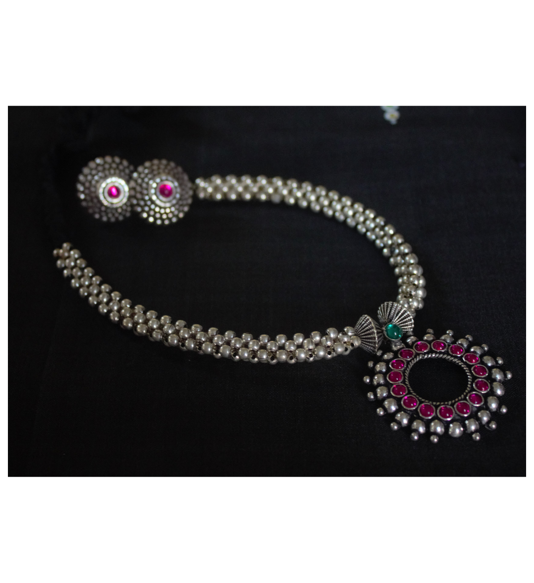 Advaita Handicrafts German Silver Tushi (choker) Set - Thin.