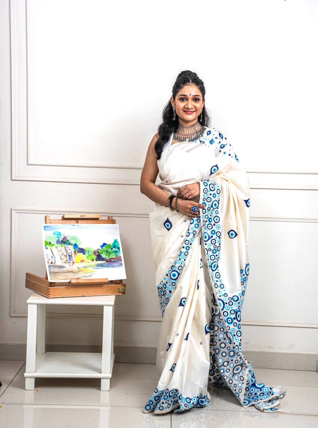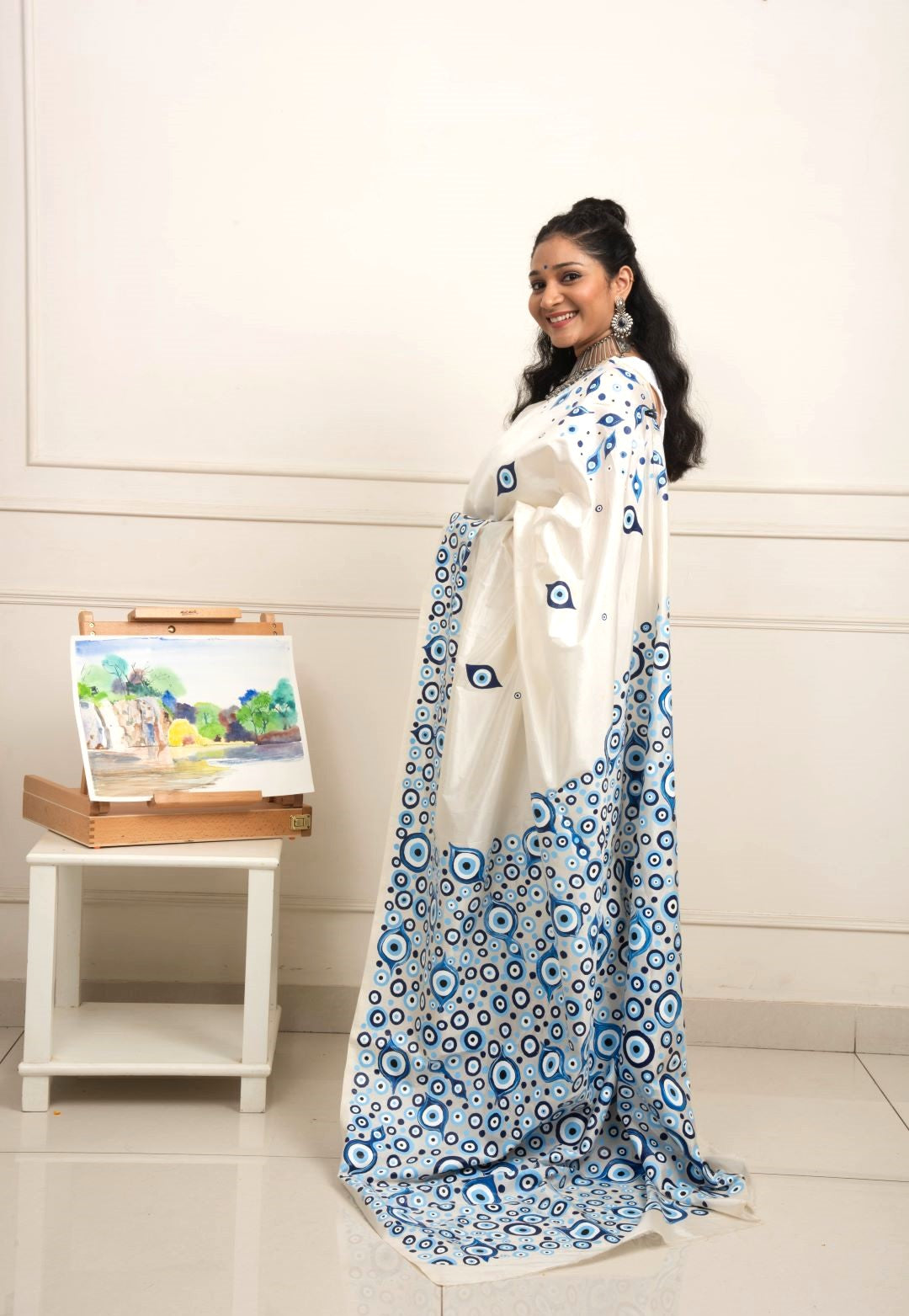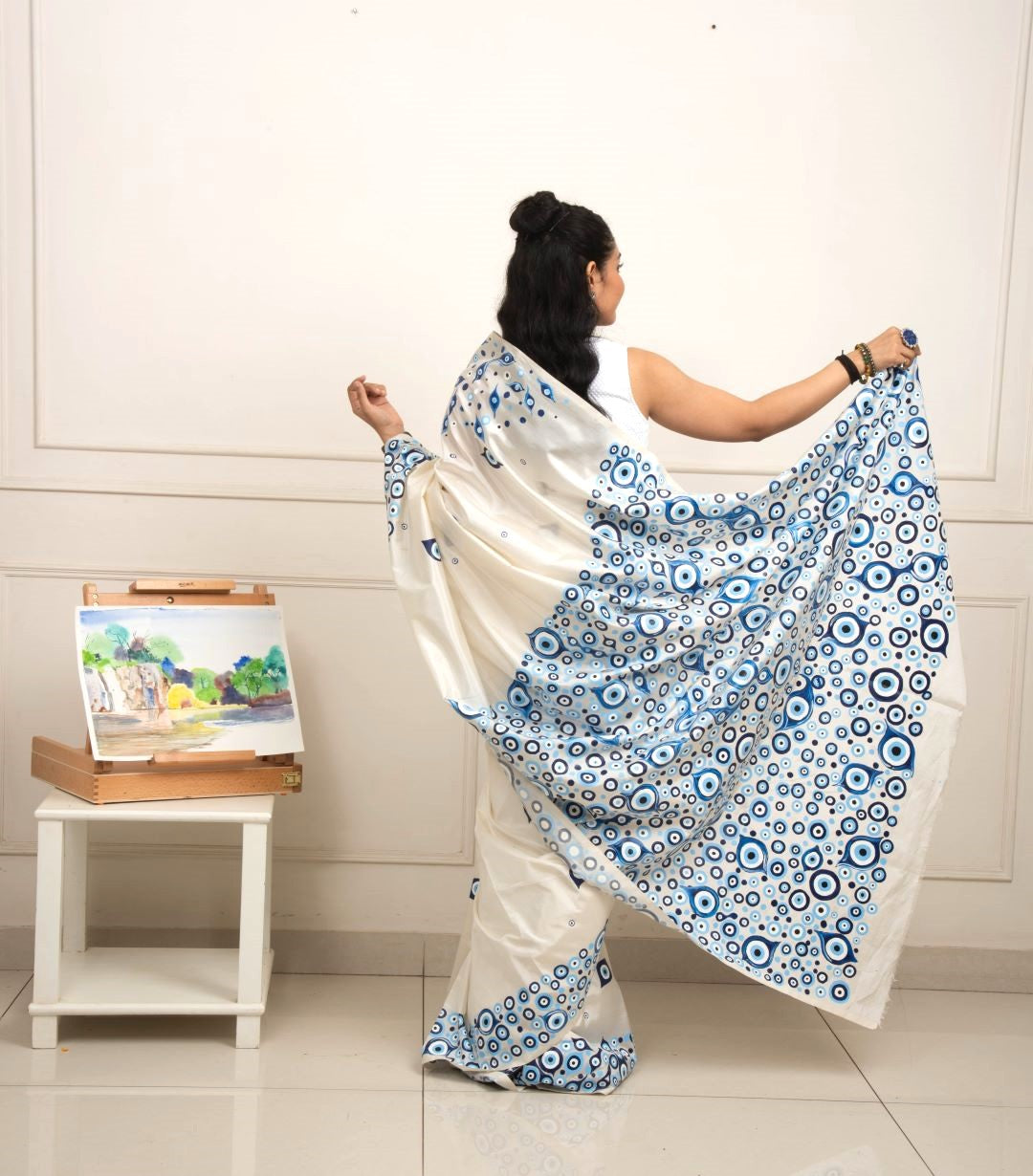 Advaita Handicrafts hand painted Evil eye charm Saree