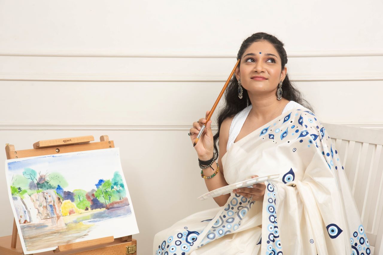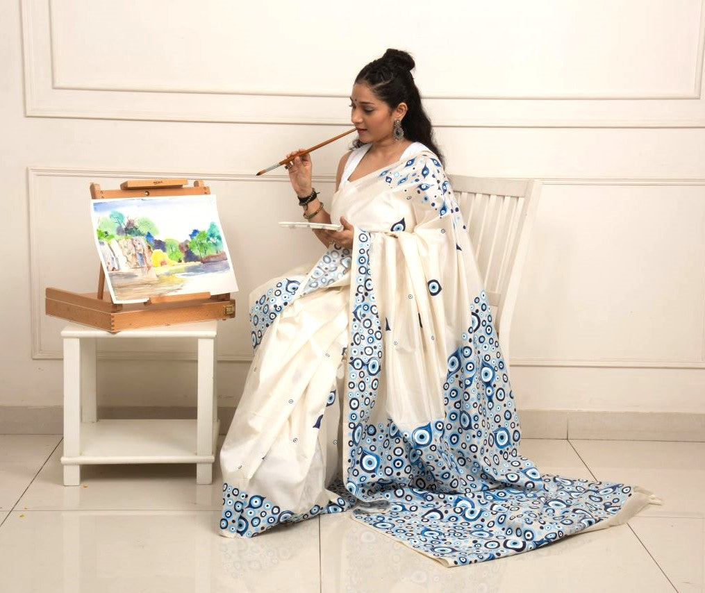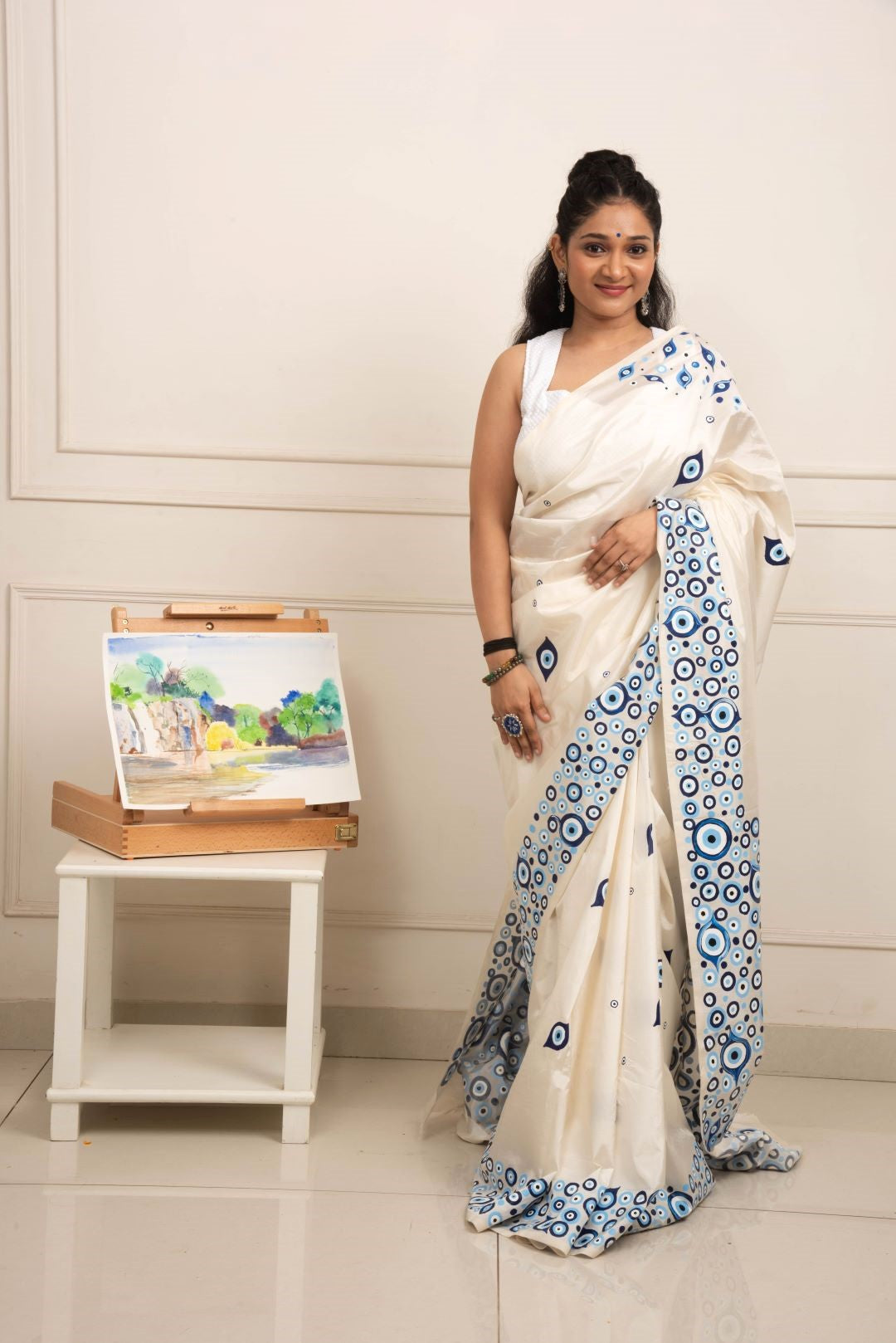 Advaita Handicrafts hand painted Evil eye charm Saree