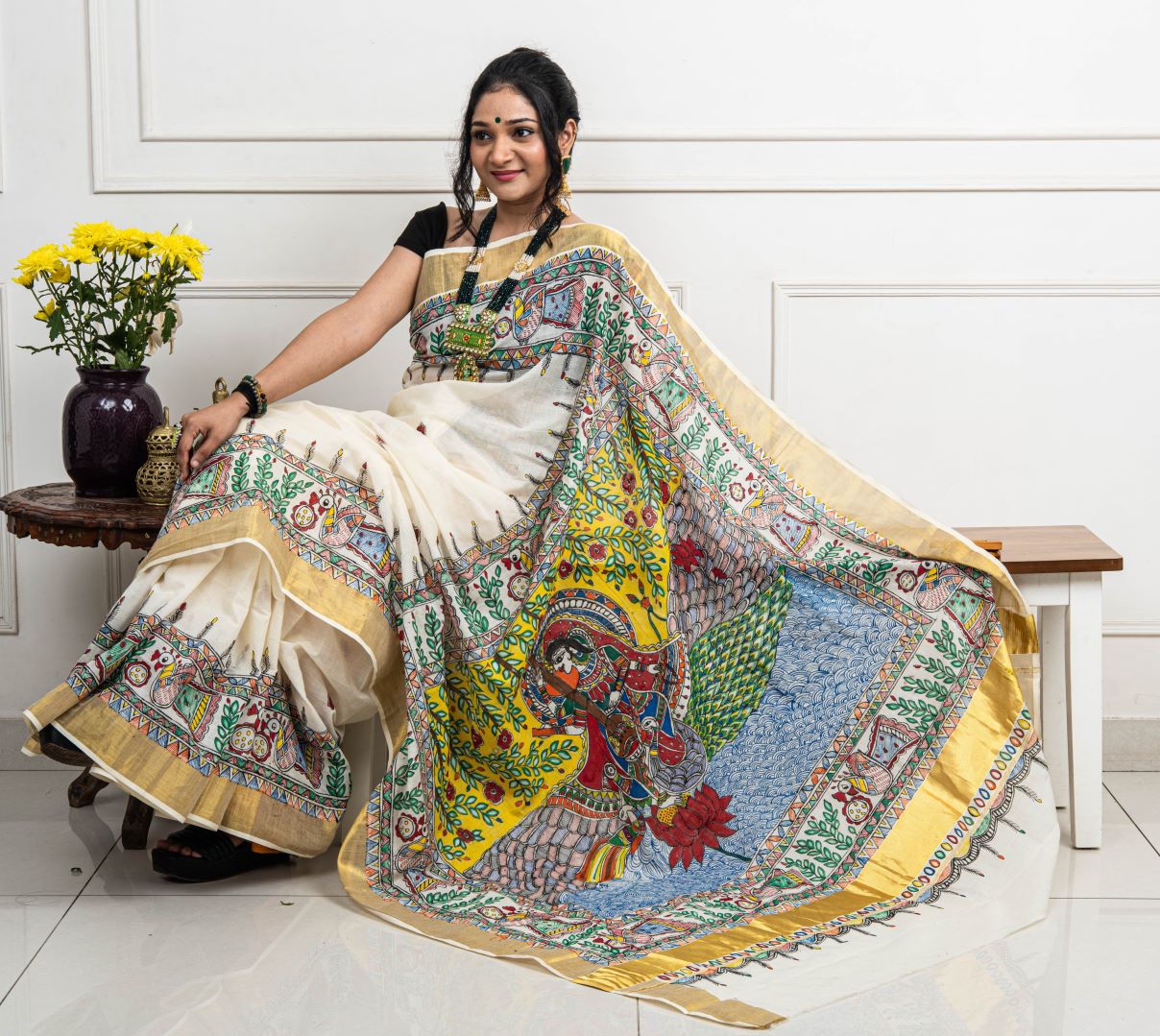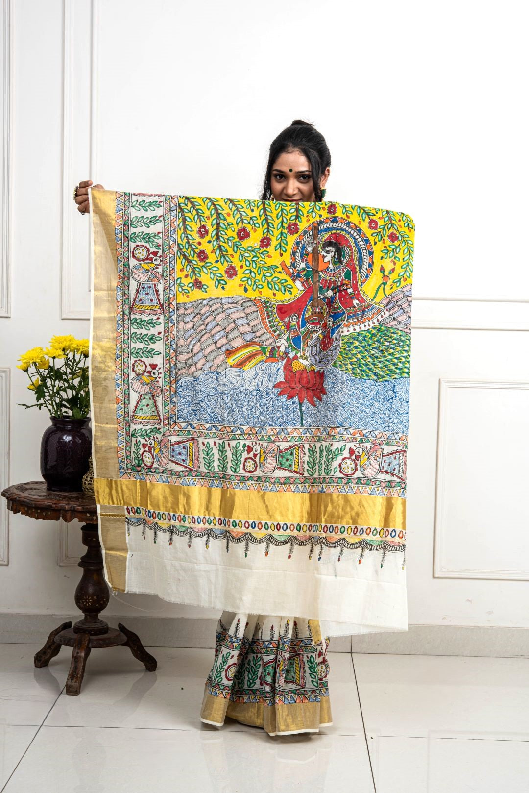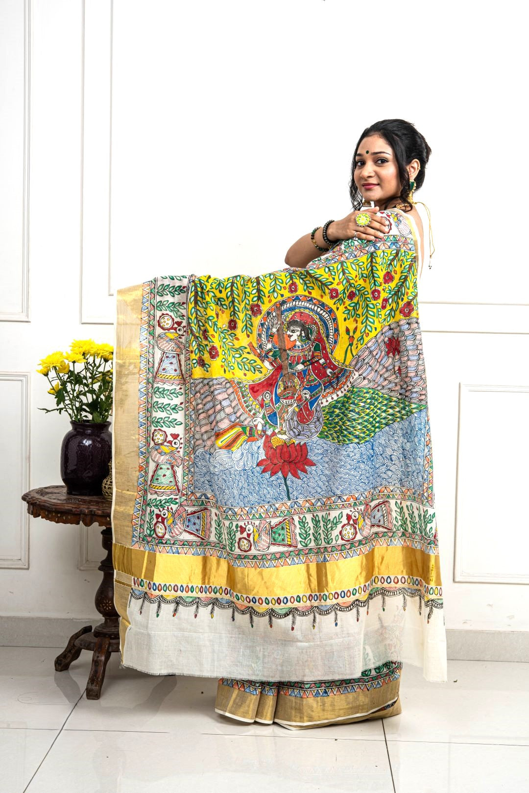 Advaita Handicrafts hand painted Madhubani Saree - Saraswati