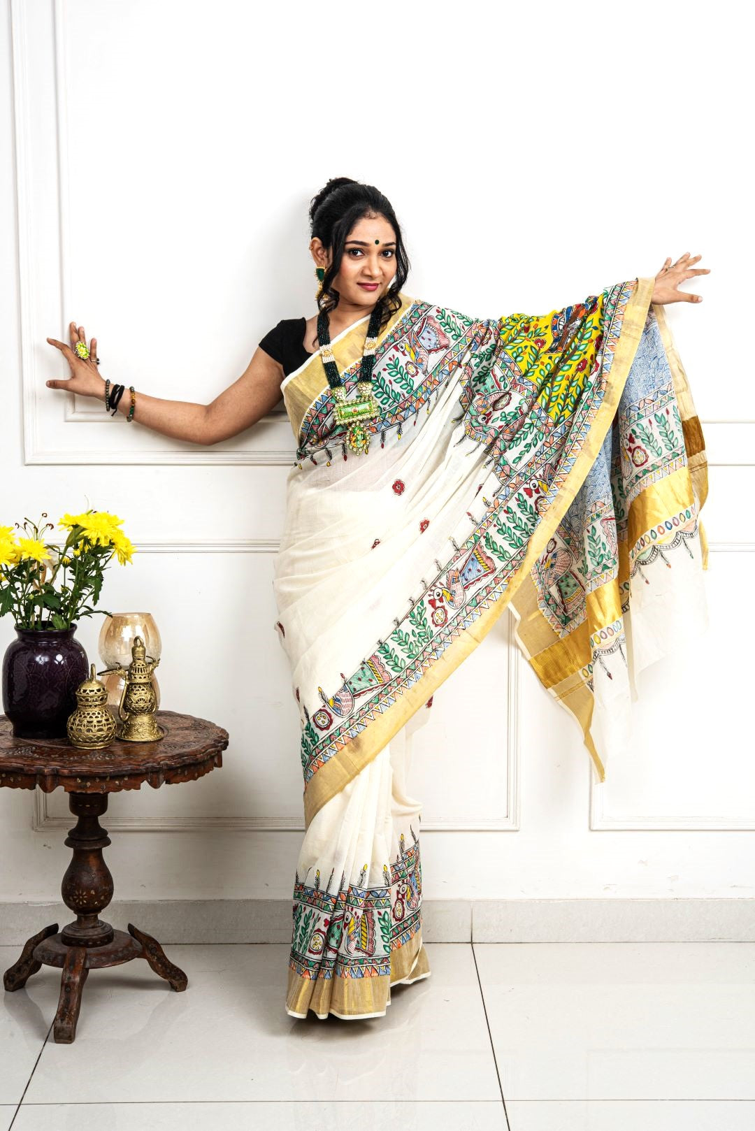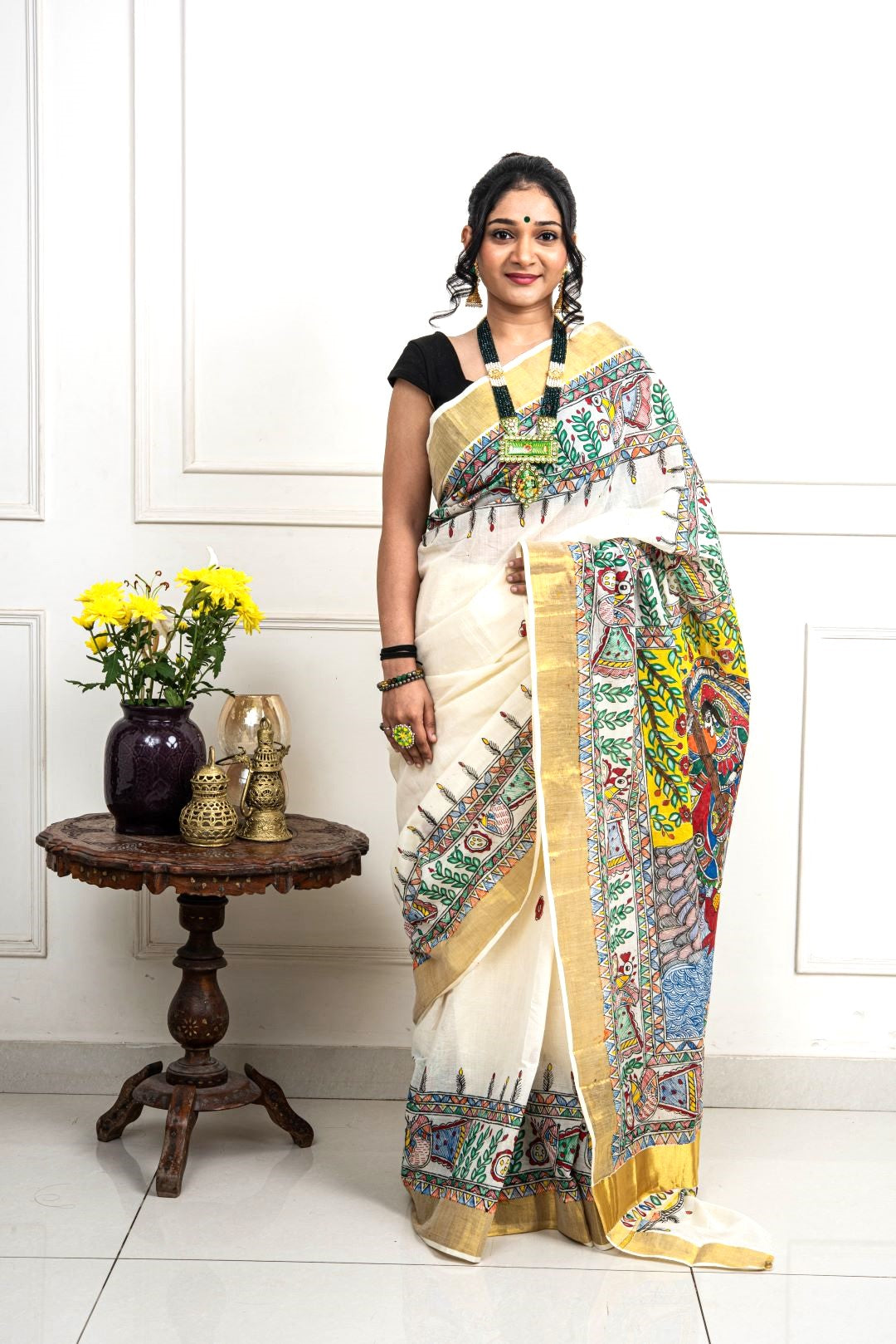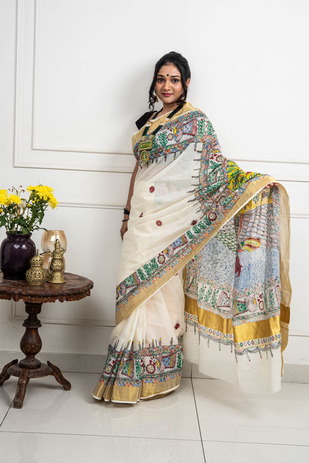 Advaita Handicrafts hand painted Madhubani Saree - Saraswati