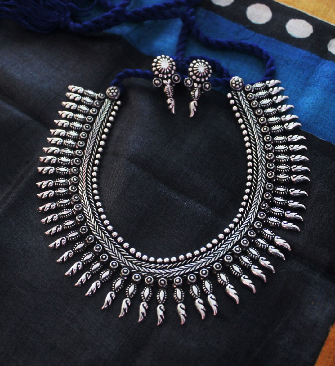 This is a simple but classy german silver necklace set that makes you look at feel like Cleopatra. We're not joking :)