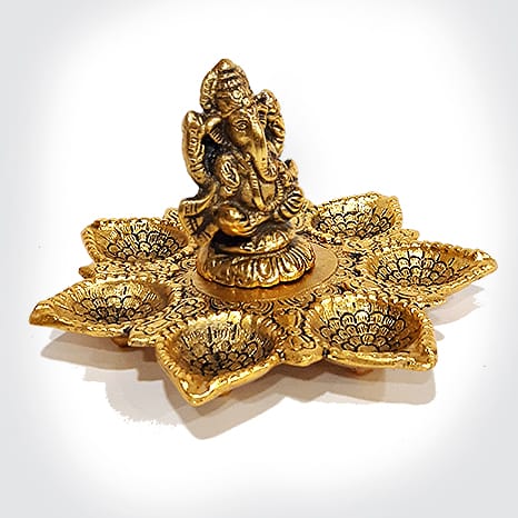 Advaita Handicrafts White Metal Pooja 7 diyas Ganesha