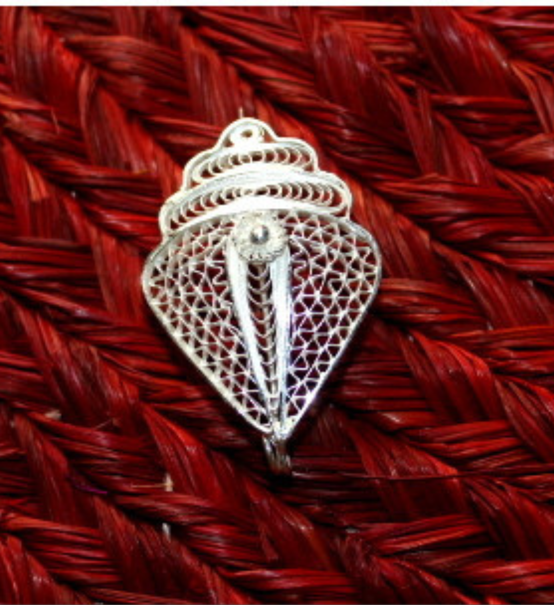 Conch Brooch - The conch in India signifies the advent of good tidings & wishes of good luck. This intricate & beautifully handcrafted brooch is sure to make a blessed gift to a near & dear one.