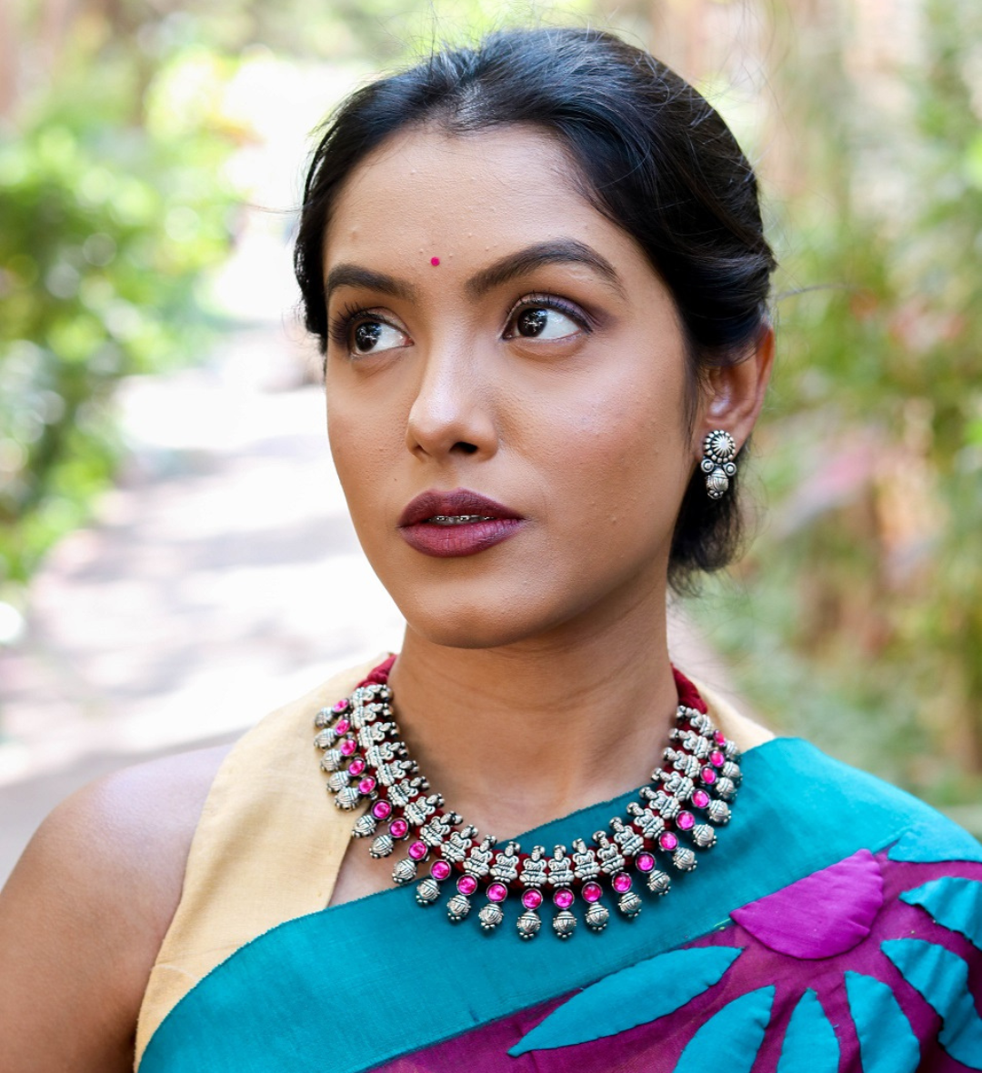 Advaita Handicrafts german silver full stone Necklace Set - Click for variety.