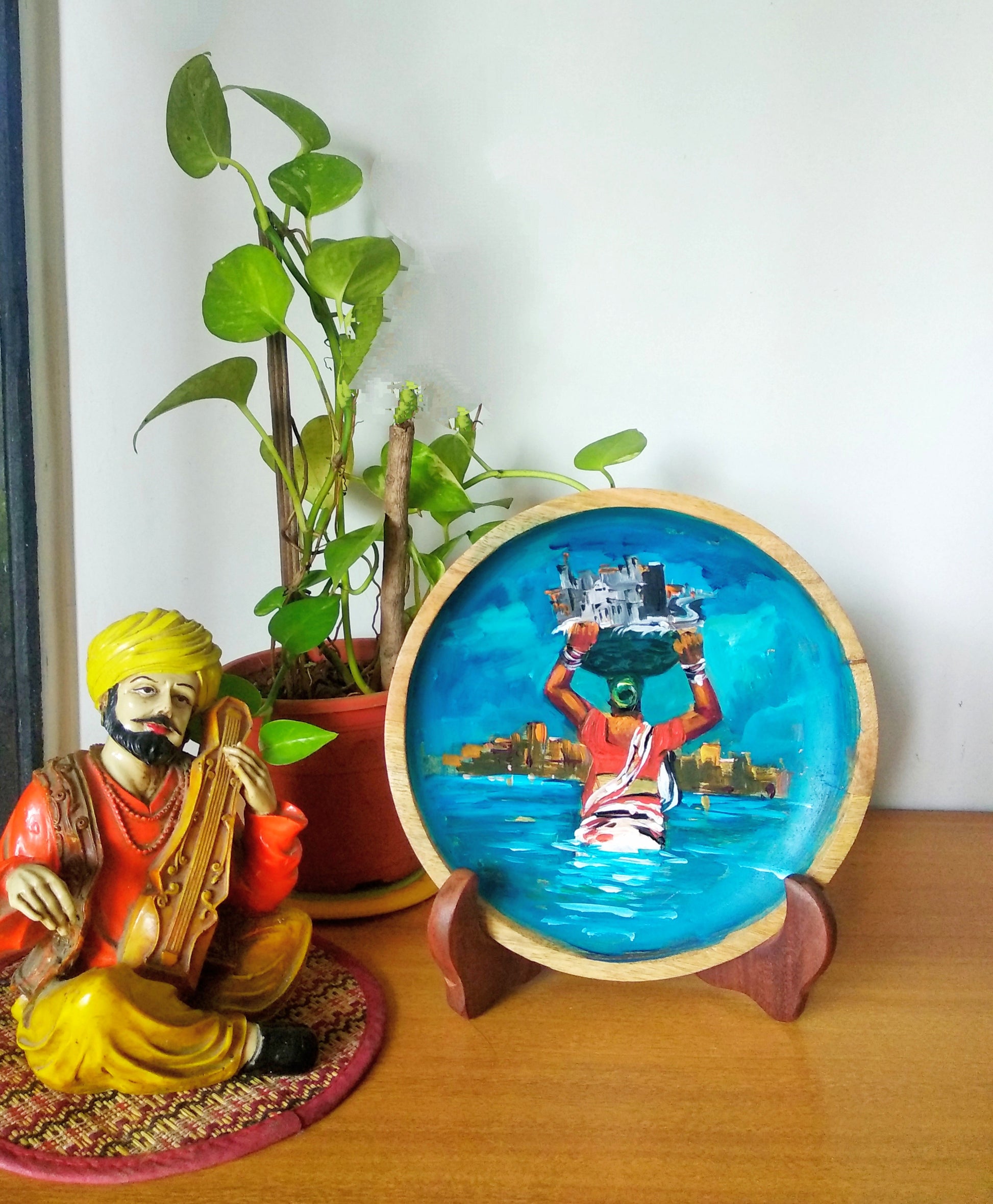 The first is a beautiful hand-painted wall/table plate that depicts a Koli fisherwoman of Mumbai. The kolis were the original residents of Mumbai and fished for a living before Mumbai turned out as the commercial capital of India.