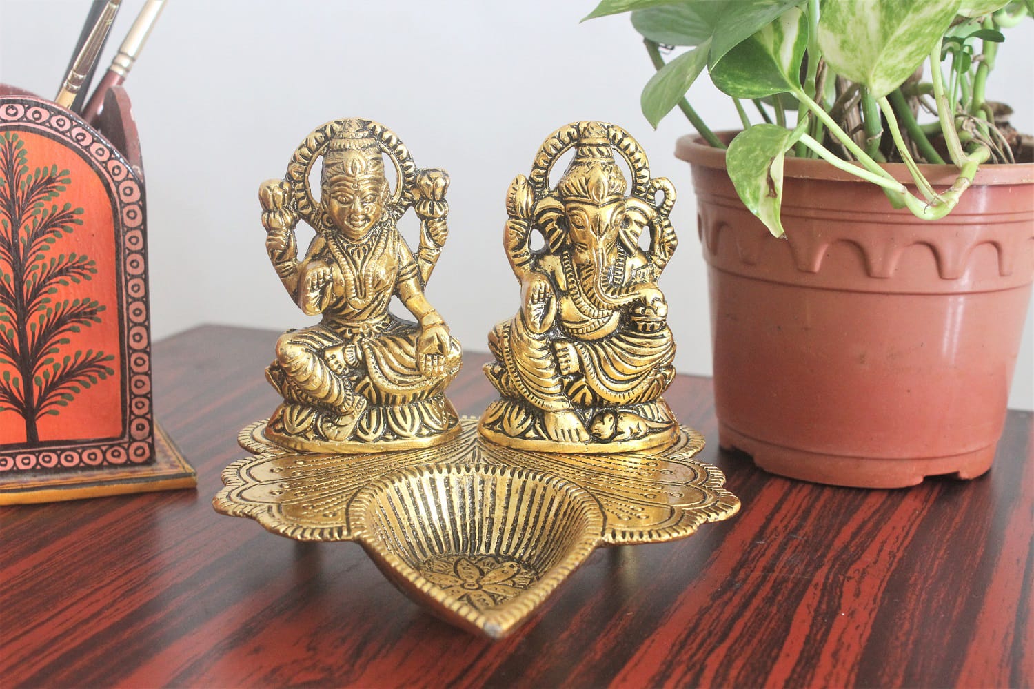 Advaita Handicrafts White Metal Pooja Ganesha Laxmi Diyas