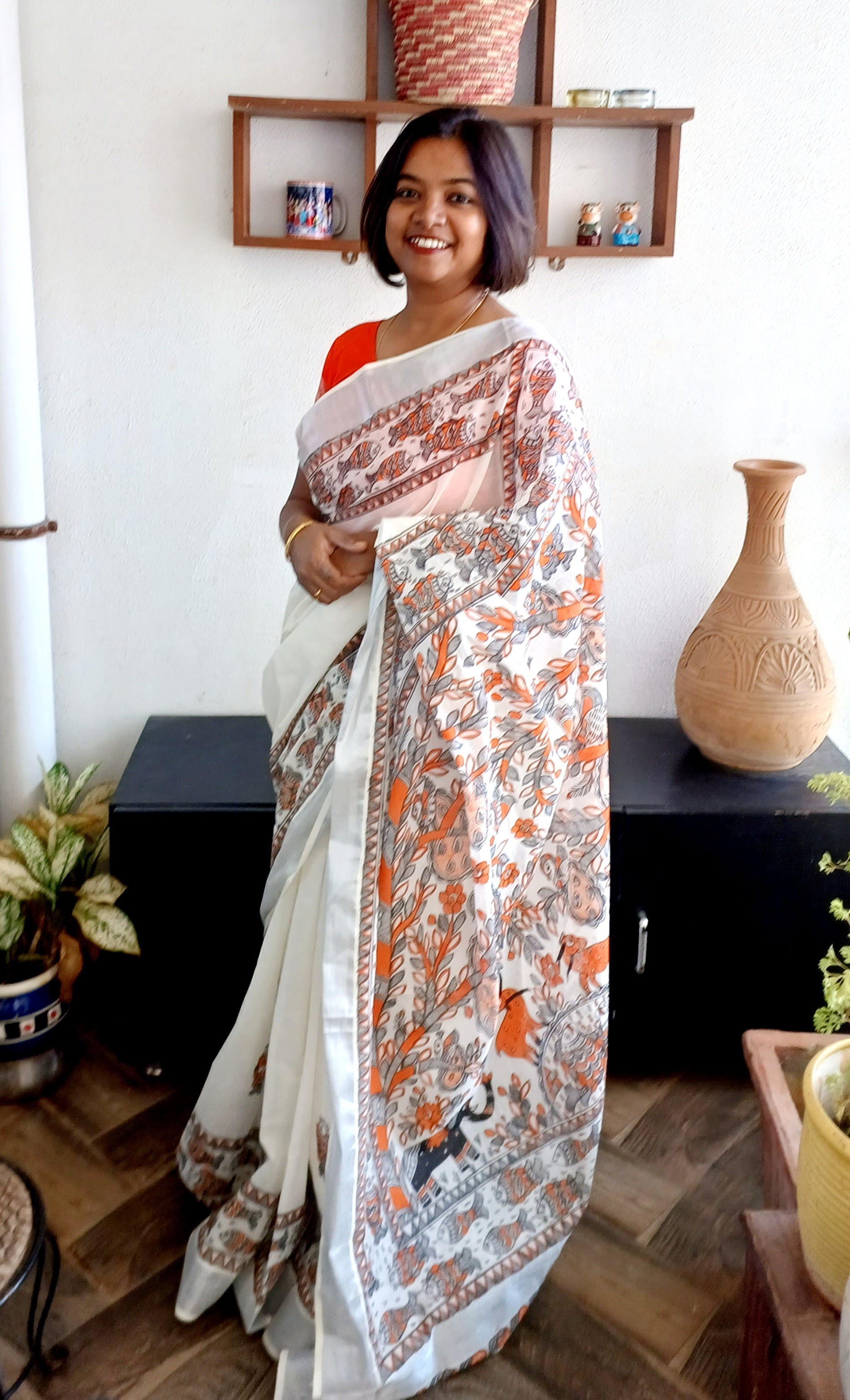 Advaita Handicrafts hand painted Madhubani Saree - Click for variety.