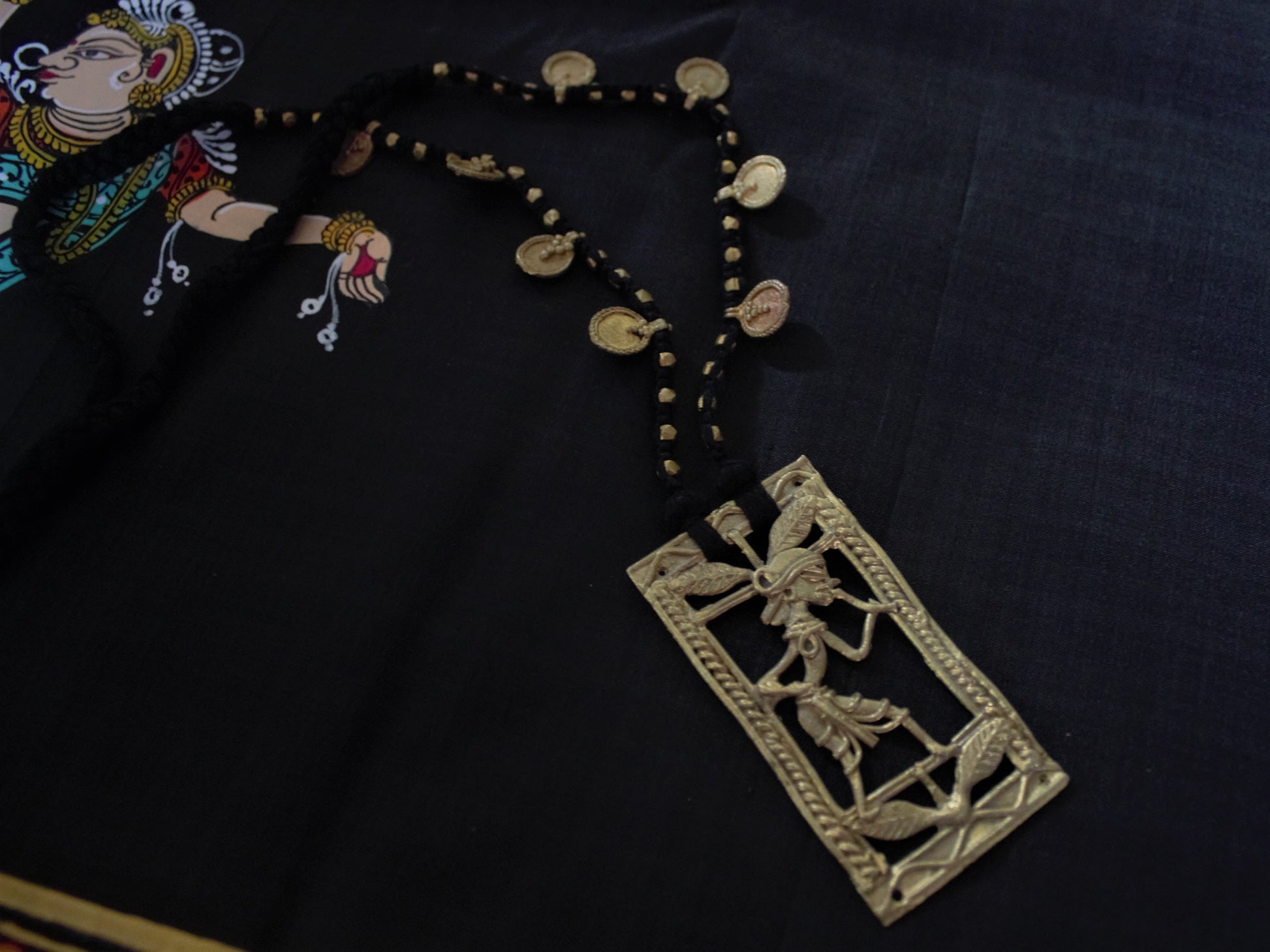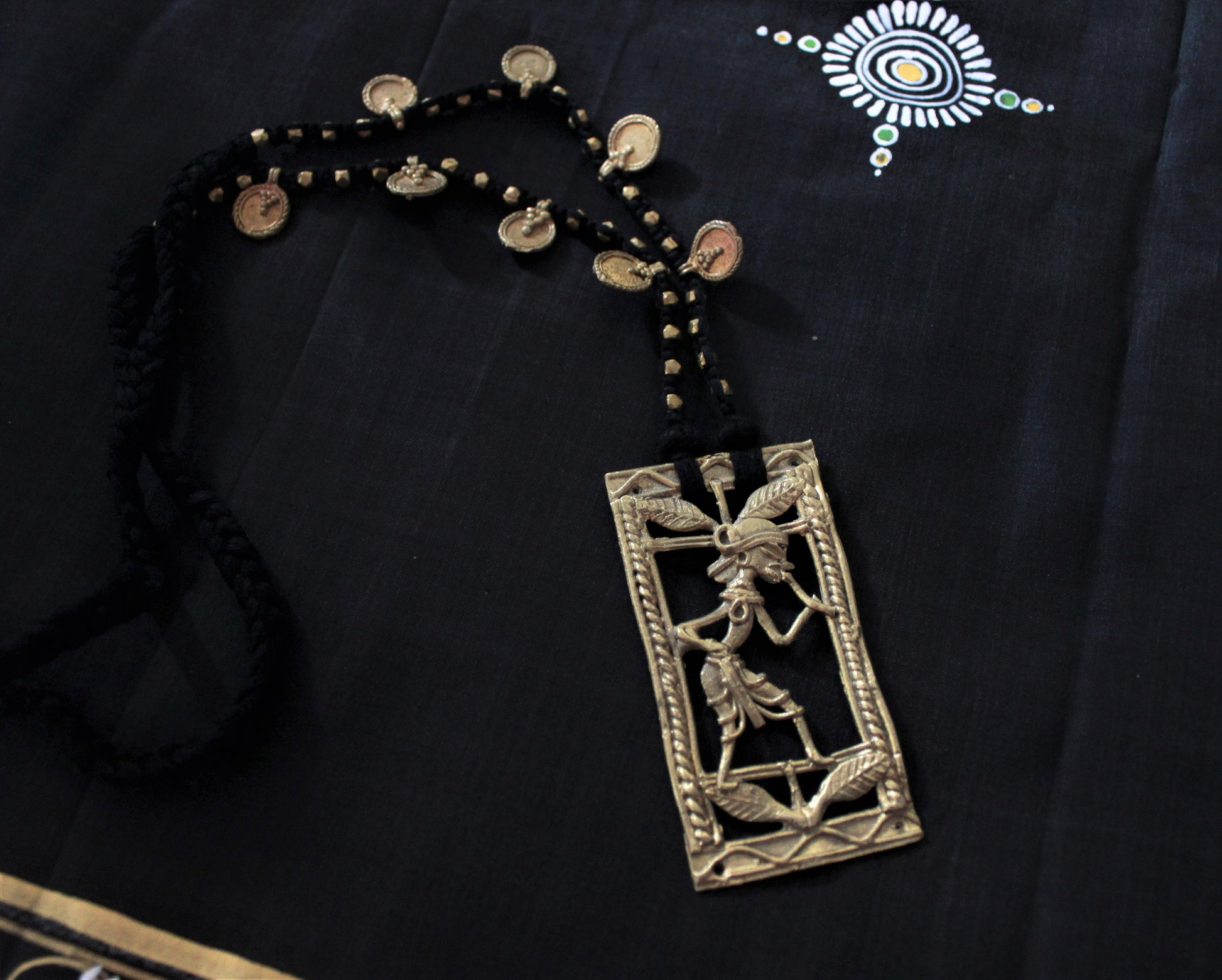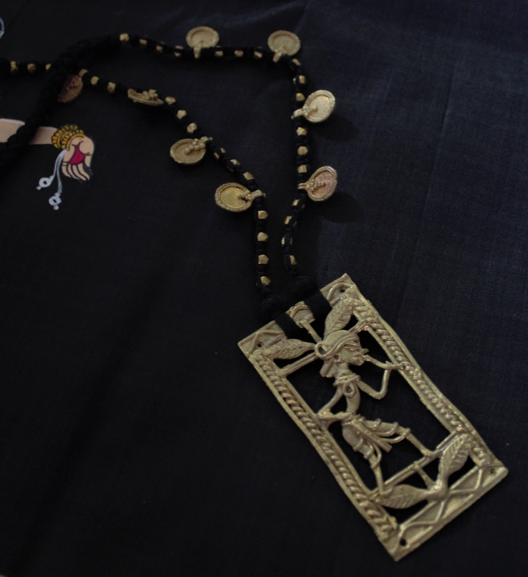 These are lovely handmade dhokra brass panels as pendants embellished with beads and small lockets to make for classy and elegant pieces.