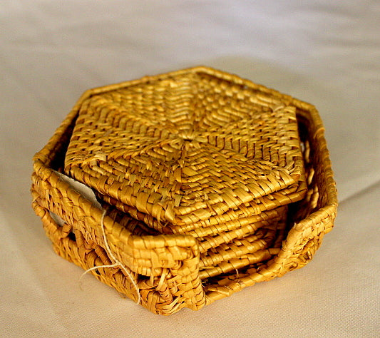 Make a style statement by going back to your roots. Cool and breezy plus exo-friendly, these golden grass coasters are sure to win your heart and those you entertain