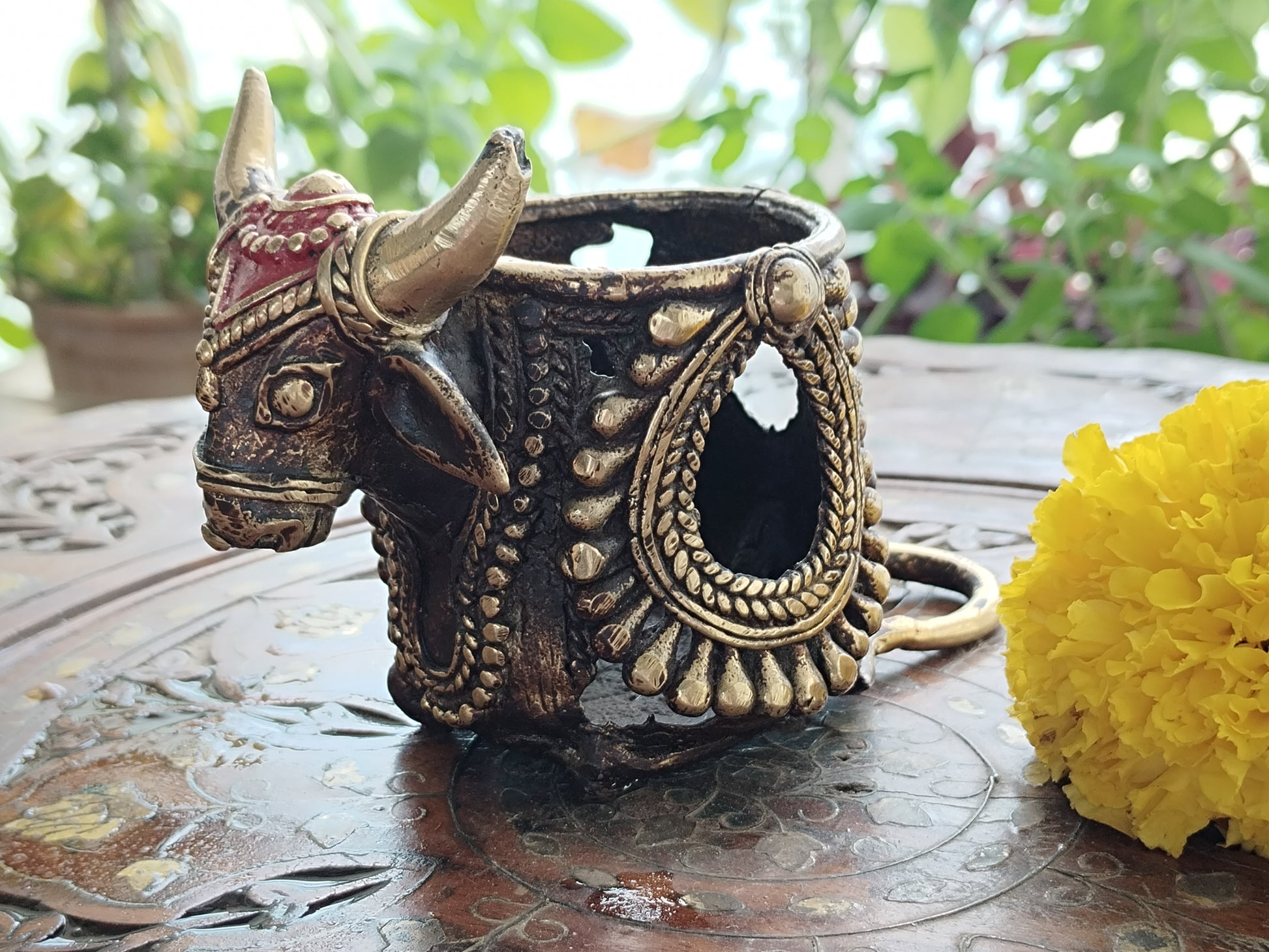 Beautiful Decorative Showpiece Bull Head pen holder is a work of art, carefully crafted by our skilled artisans. 100% Authentic Hand crafted Dhokra.