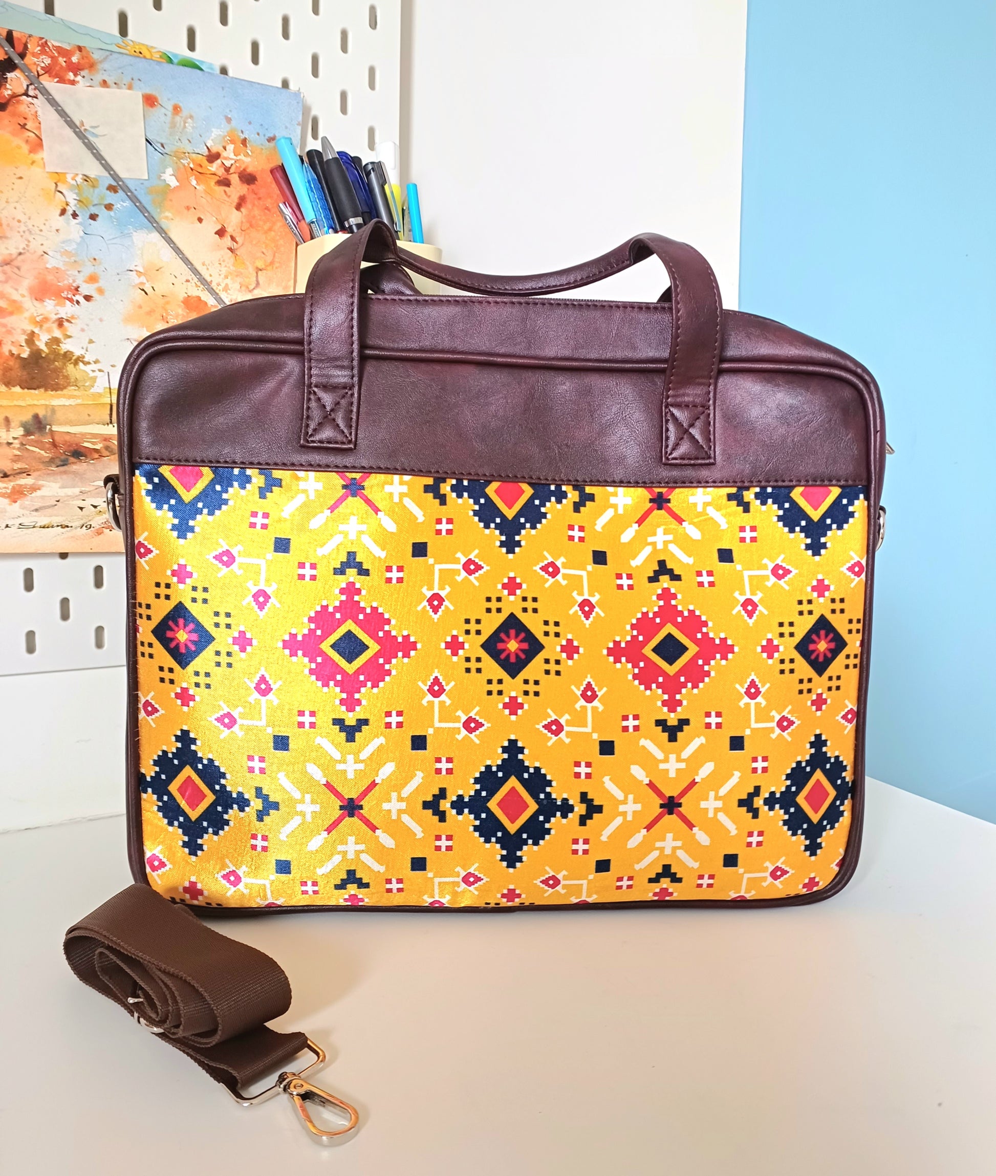 Faux leather that gives the look of genuine leather while being kind and the Gaji silk panel on the side gives it a color pop as design twist.