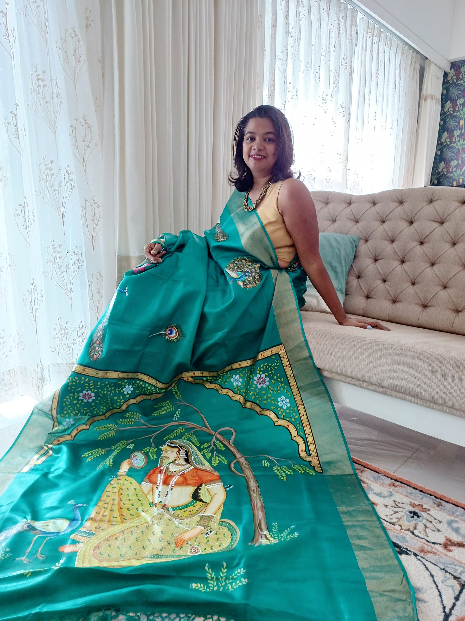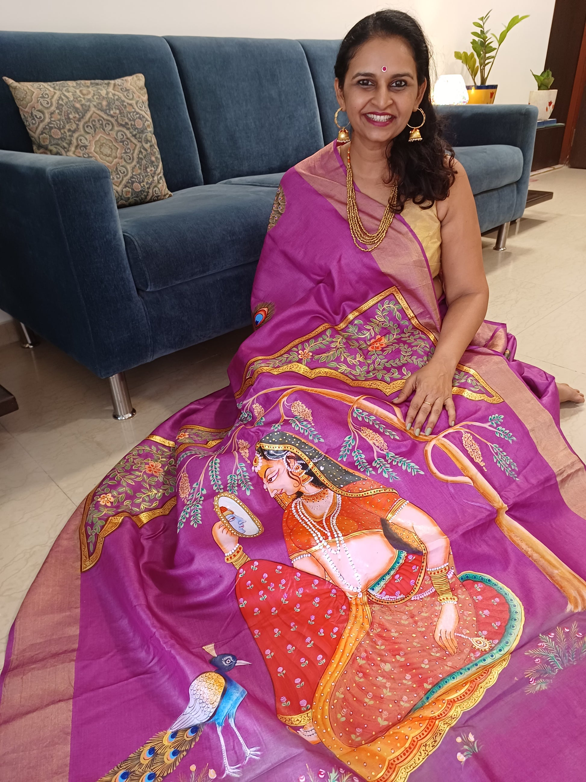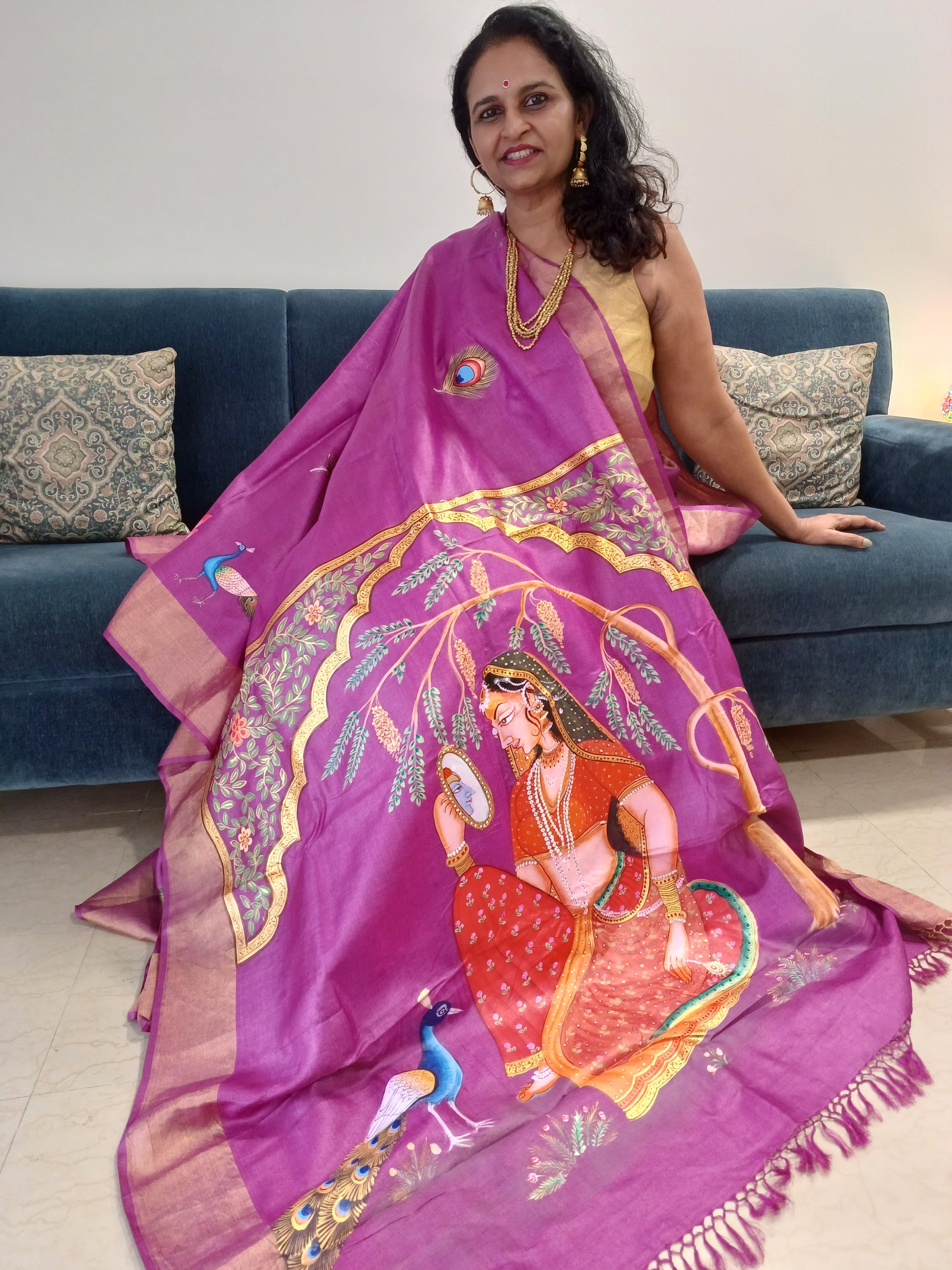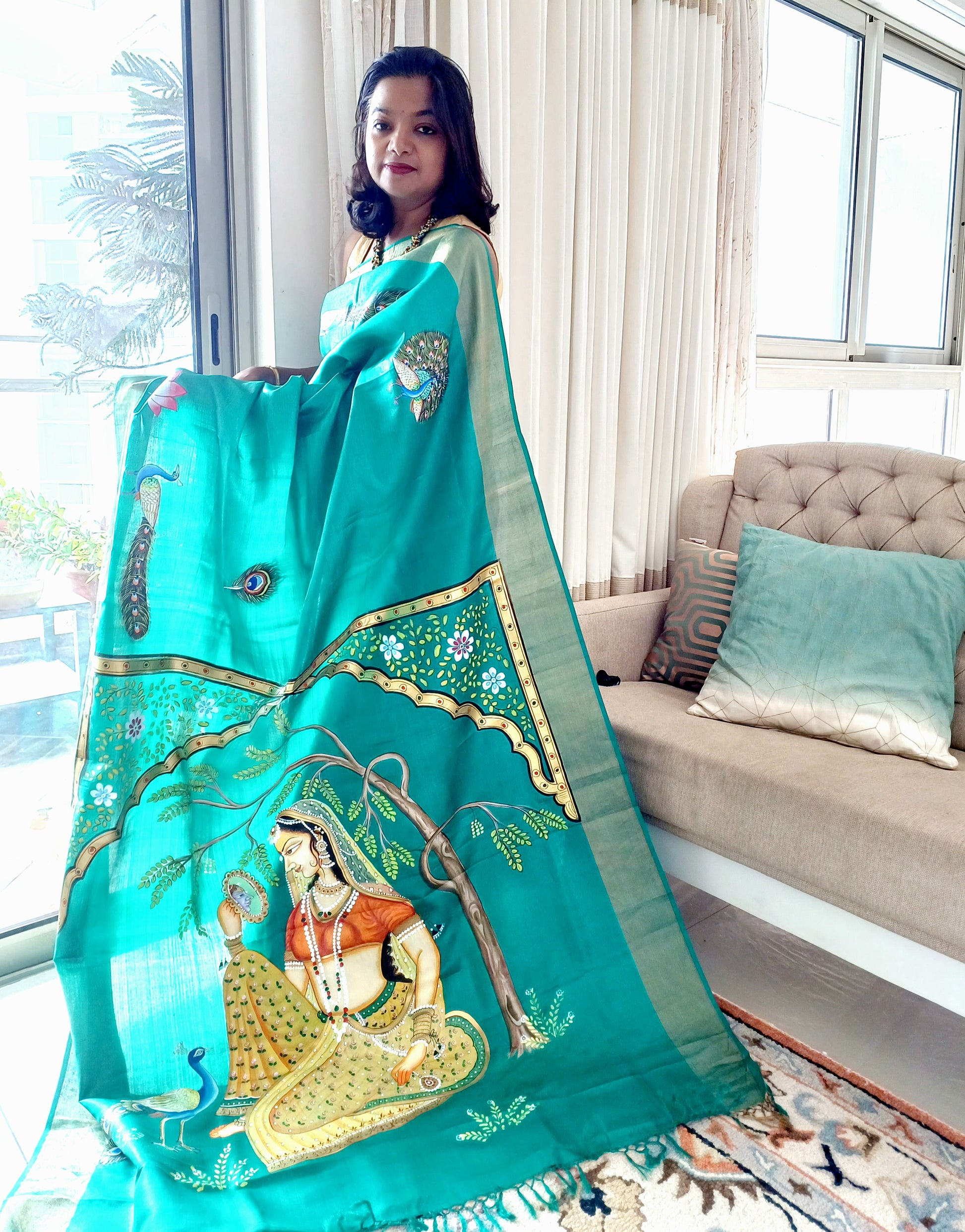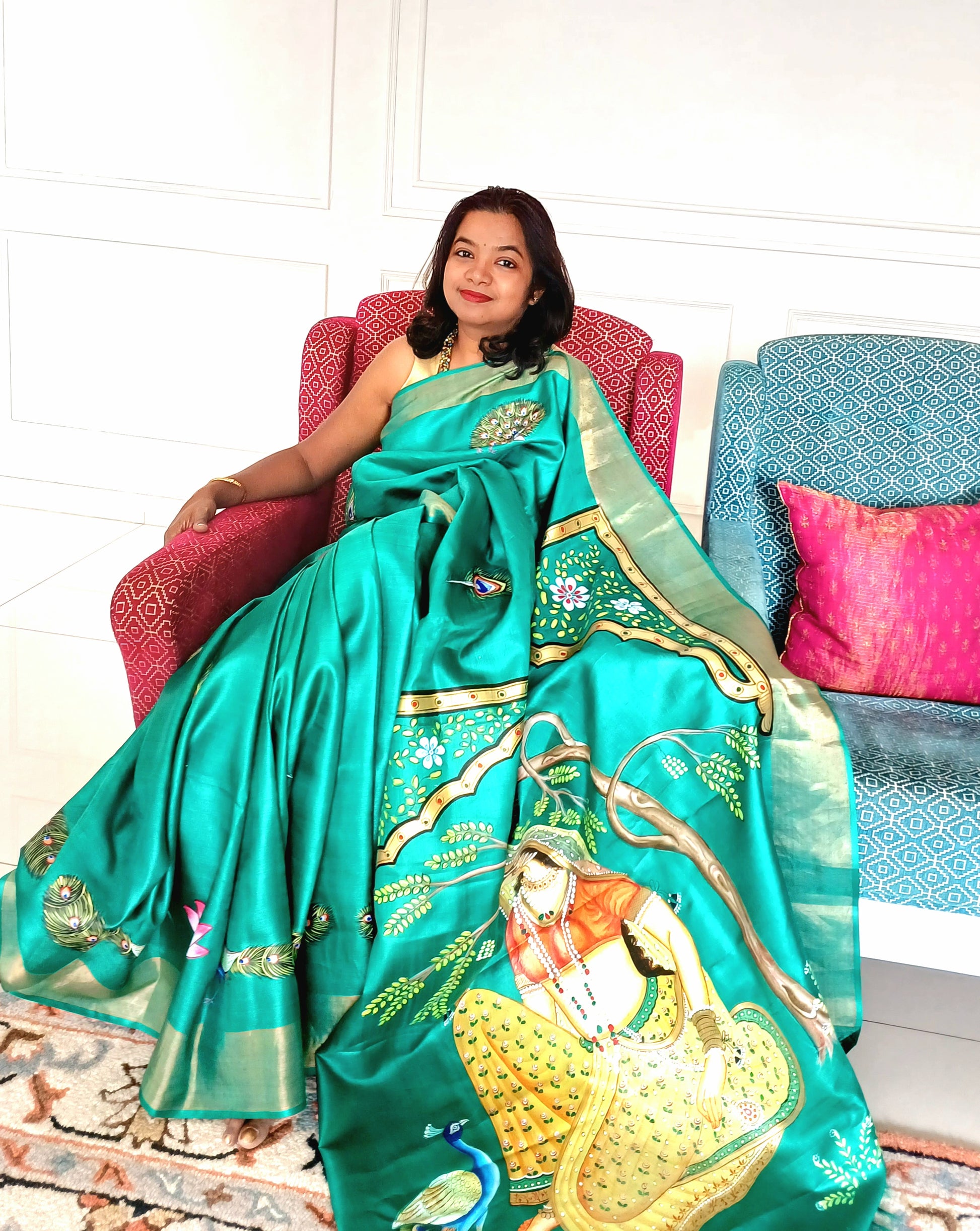 Handpainted Ragini Shringar Raas Pichwai saree in pure tassar