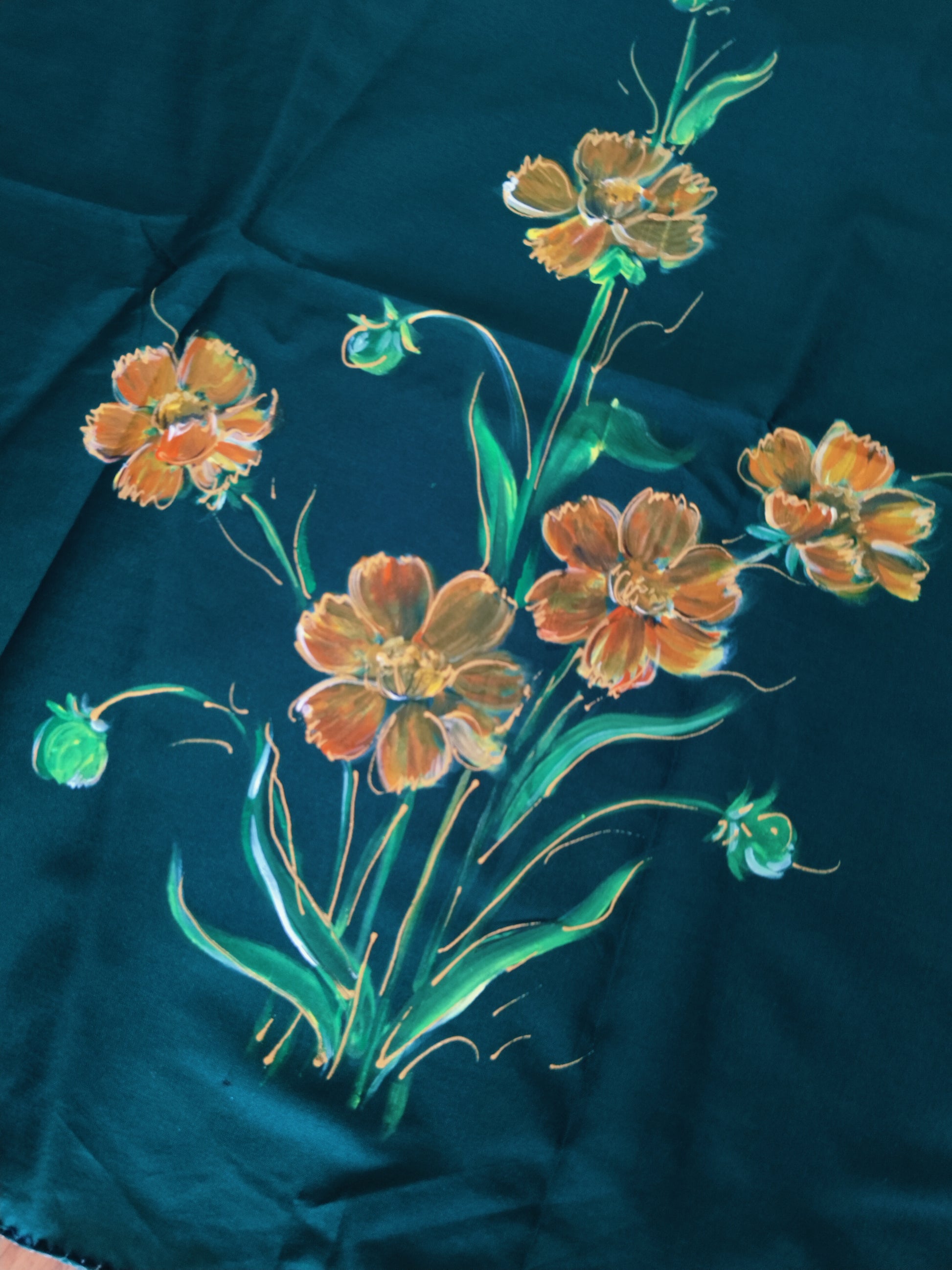 A beautiful hand-painted green stole with Amaltas flowers