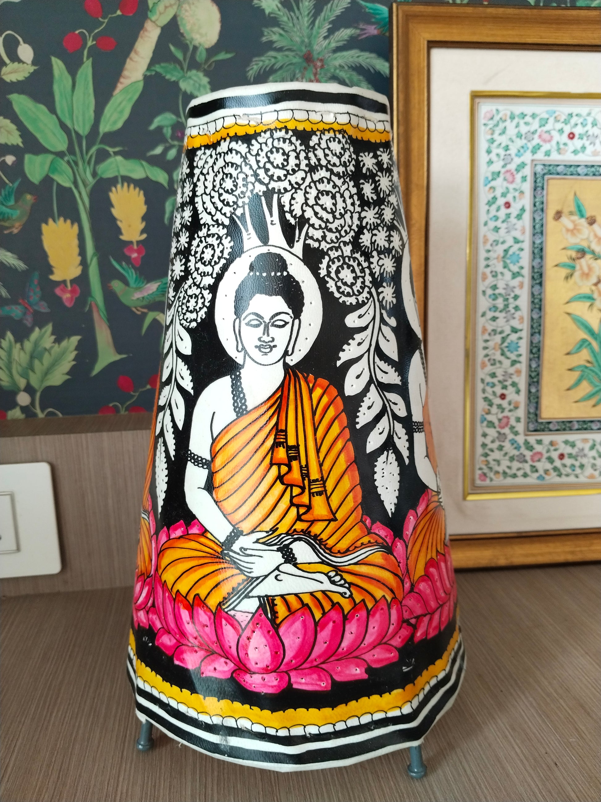 Leather handcrafted Buddha lamps - Tholu Bommalata crafts - 12 inches
