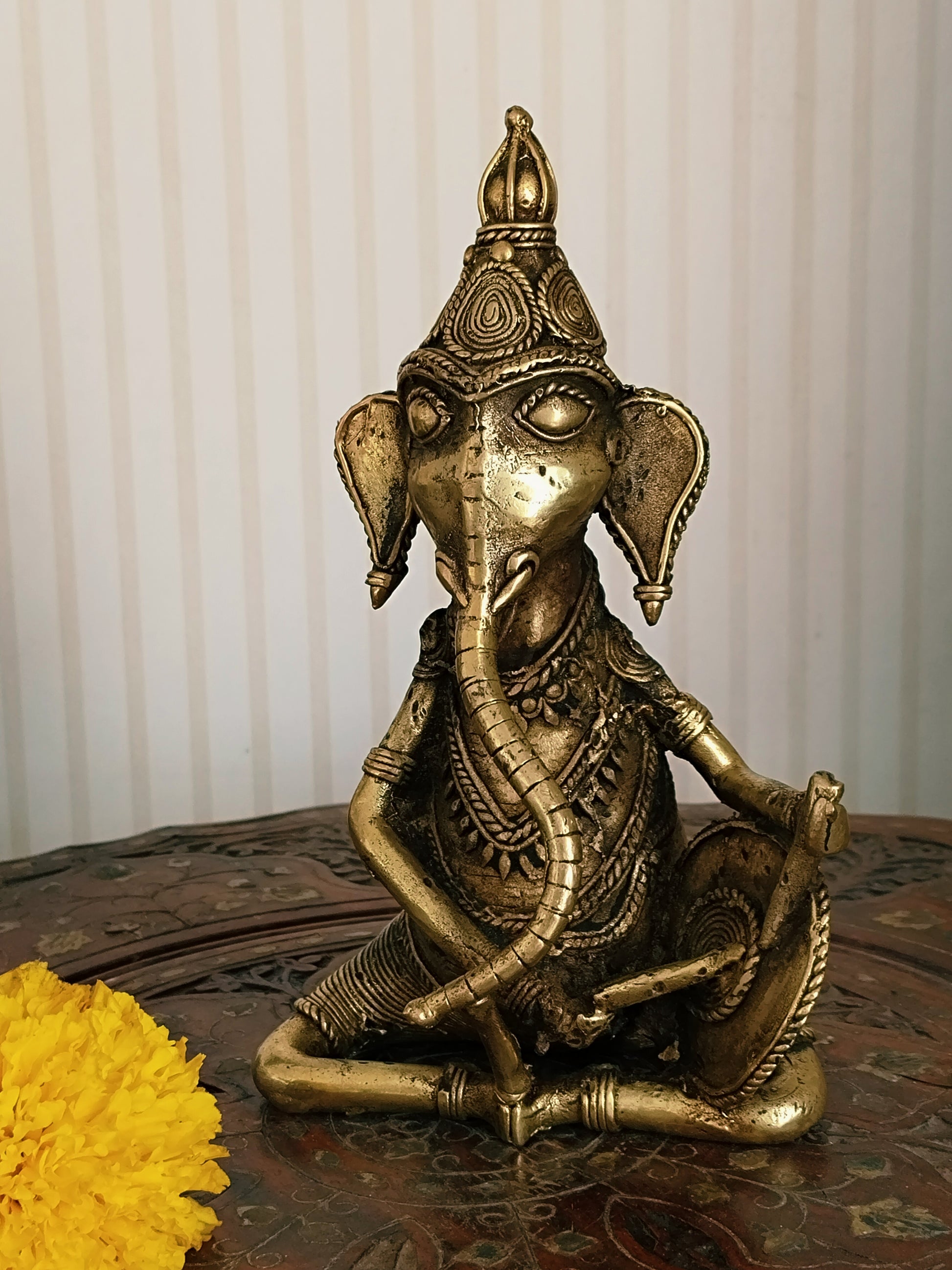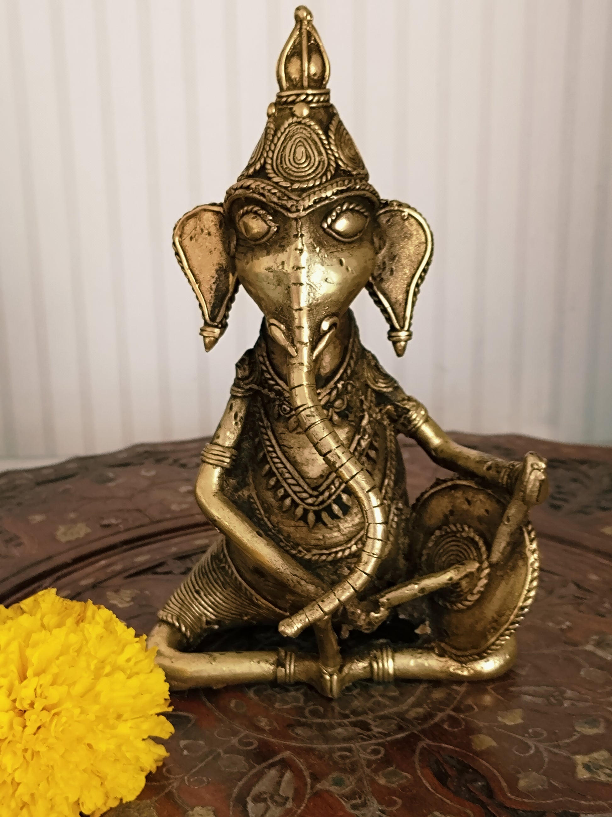 Lord Ganesha the musician - Handcrafted Dhokra Art