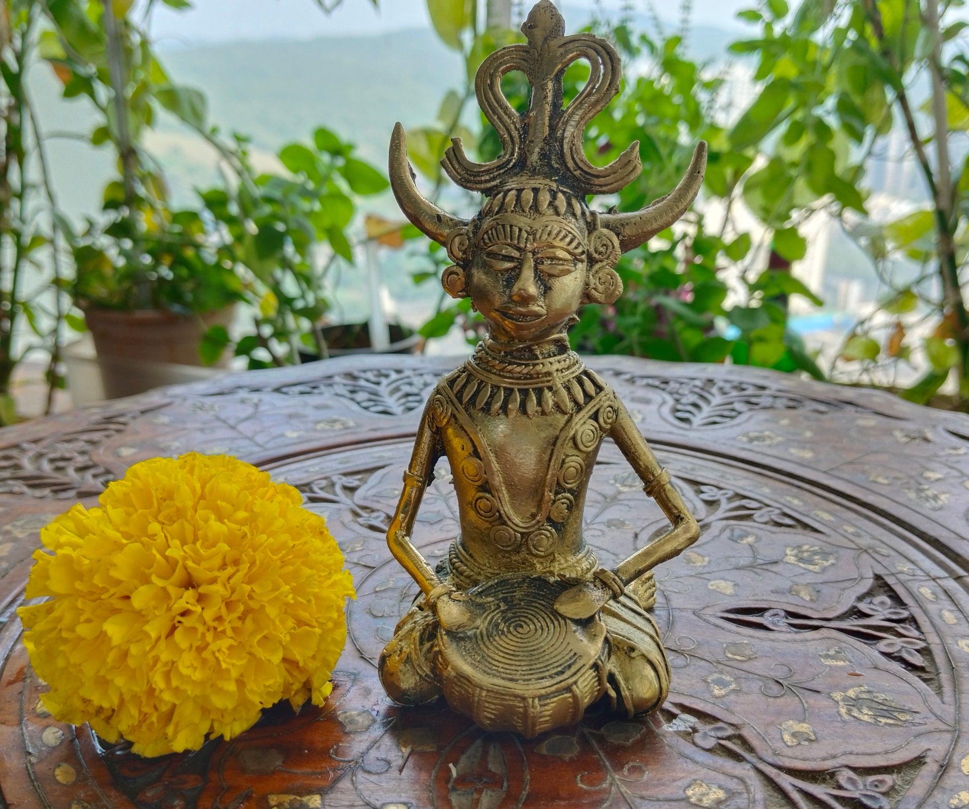 Musician Playing Drum Brass Statue - A beautiful home decor item handcrafted by our artisans. Brass handicrafts showpieces are completely handmade products. Authentic Hand crafted Dhokra
