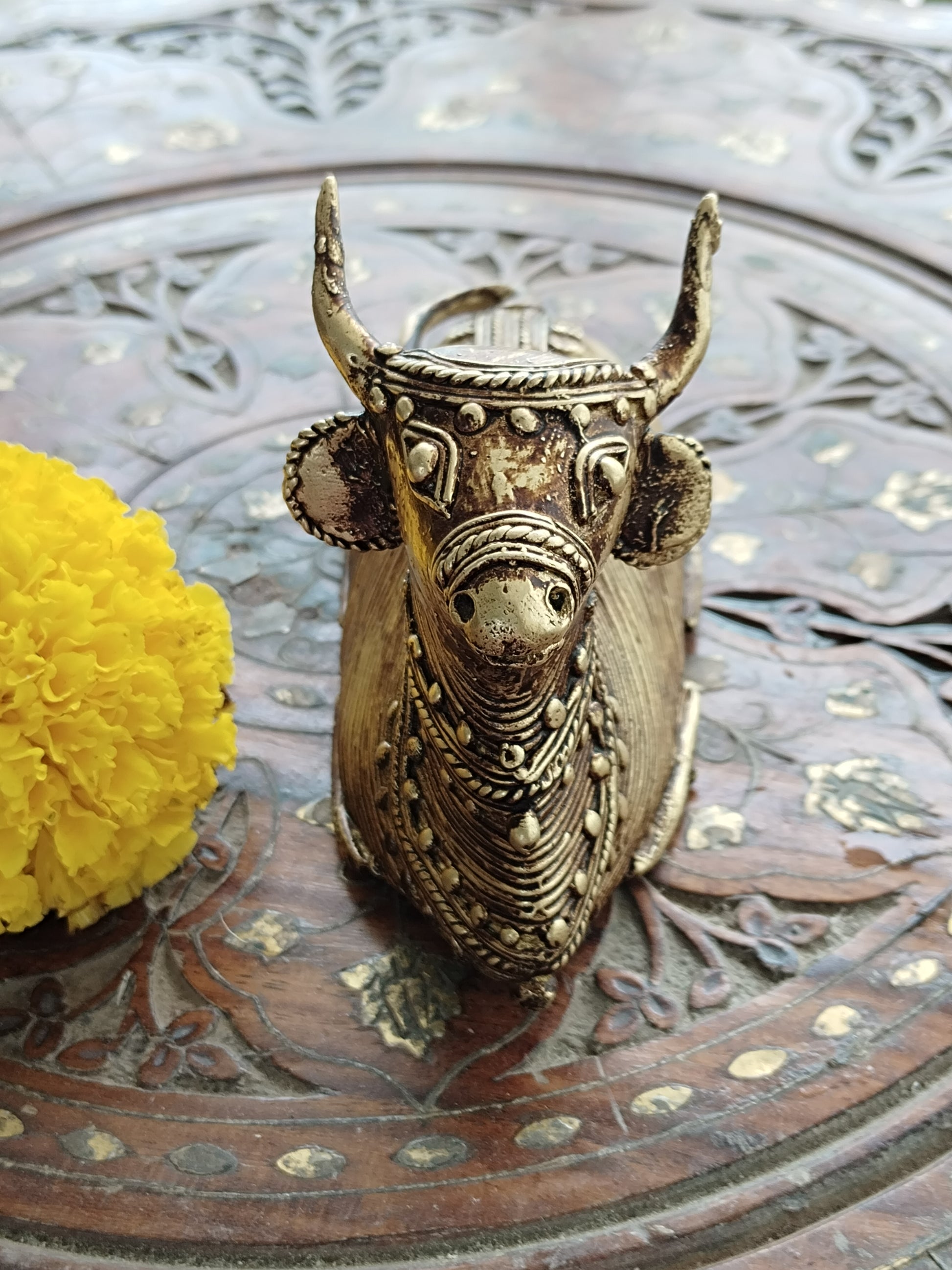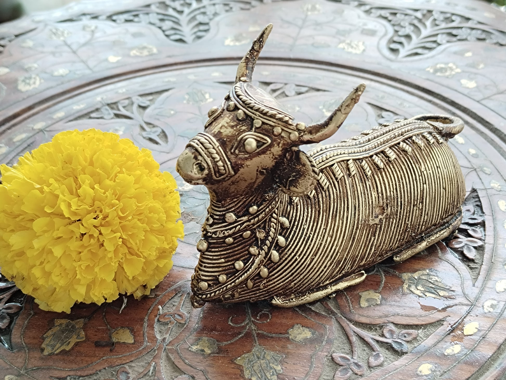 Brass Dhokra Nandi Bull statue, Figurine is a work of art, carefully crafted by our skilled artisans. 100% Authentic Hand crafted Dhokra.