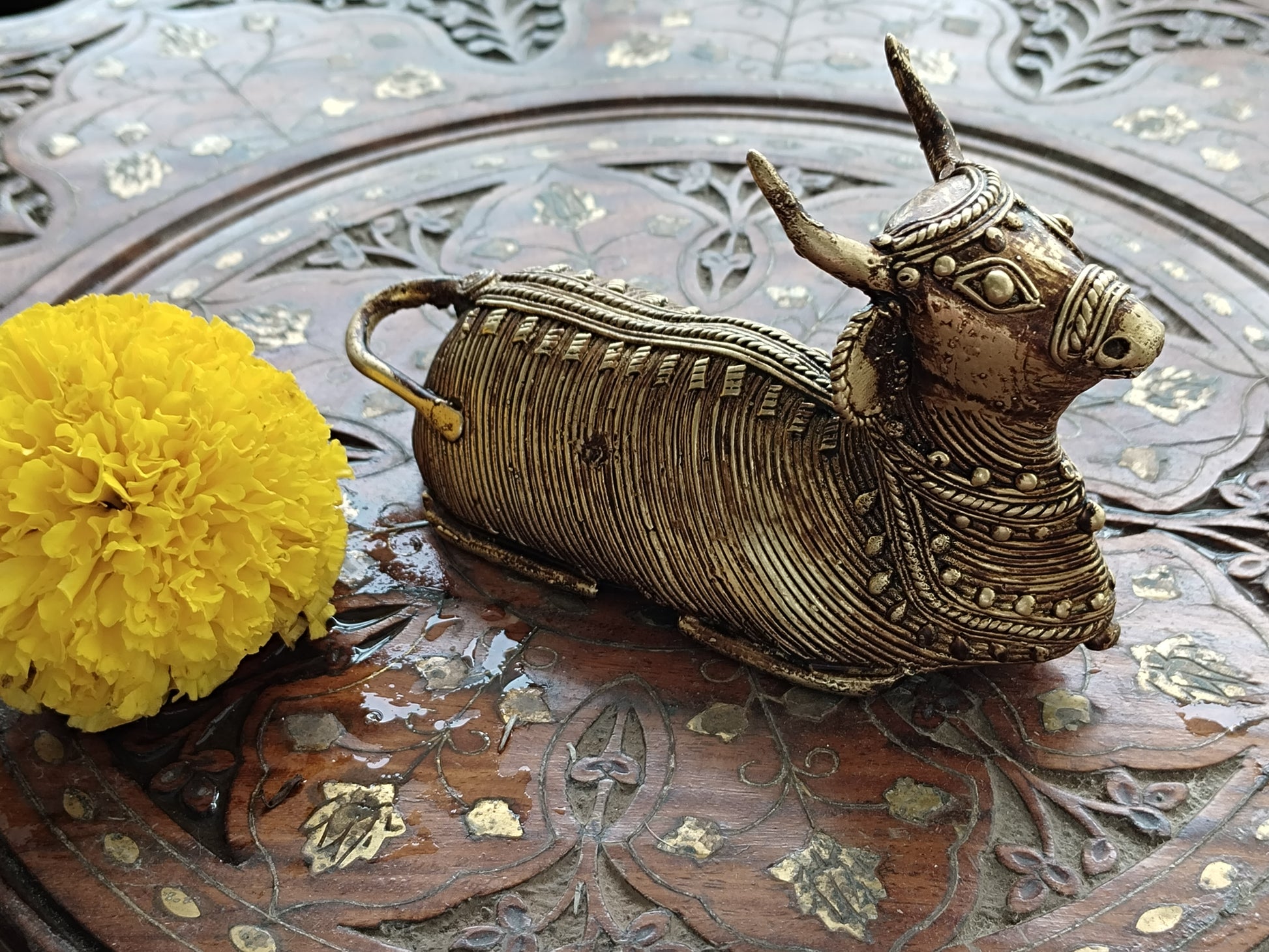 Nandi Bull in Dhokra Art Form - Handcrafted Dhokra Art Brass.