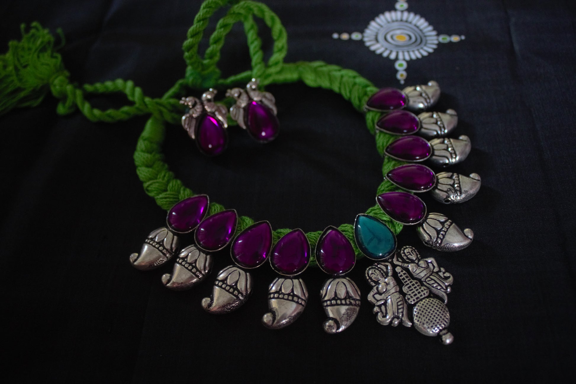 Product care: Please note that oxidised jewellery/german silver jewellery or Brass Dhokra jewellery is always given to tarnishing on exposure to air. The extent of tarnishing depends on the product care and location. Humid climate accelarates the process. Please ensure you always store the product in air tight pouches/boxes. Ensure no perfume is sprayed on it. Water contact should be minimal. After use, wipe dry and re-store in air tight pouches.