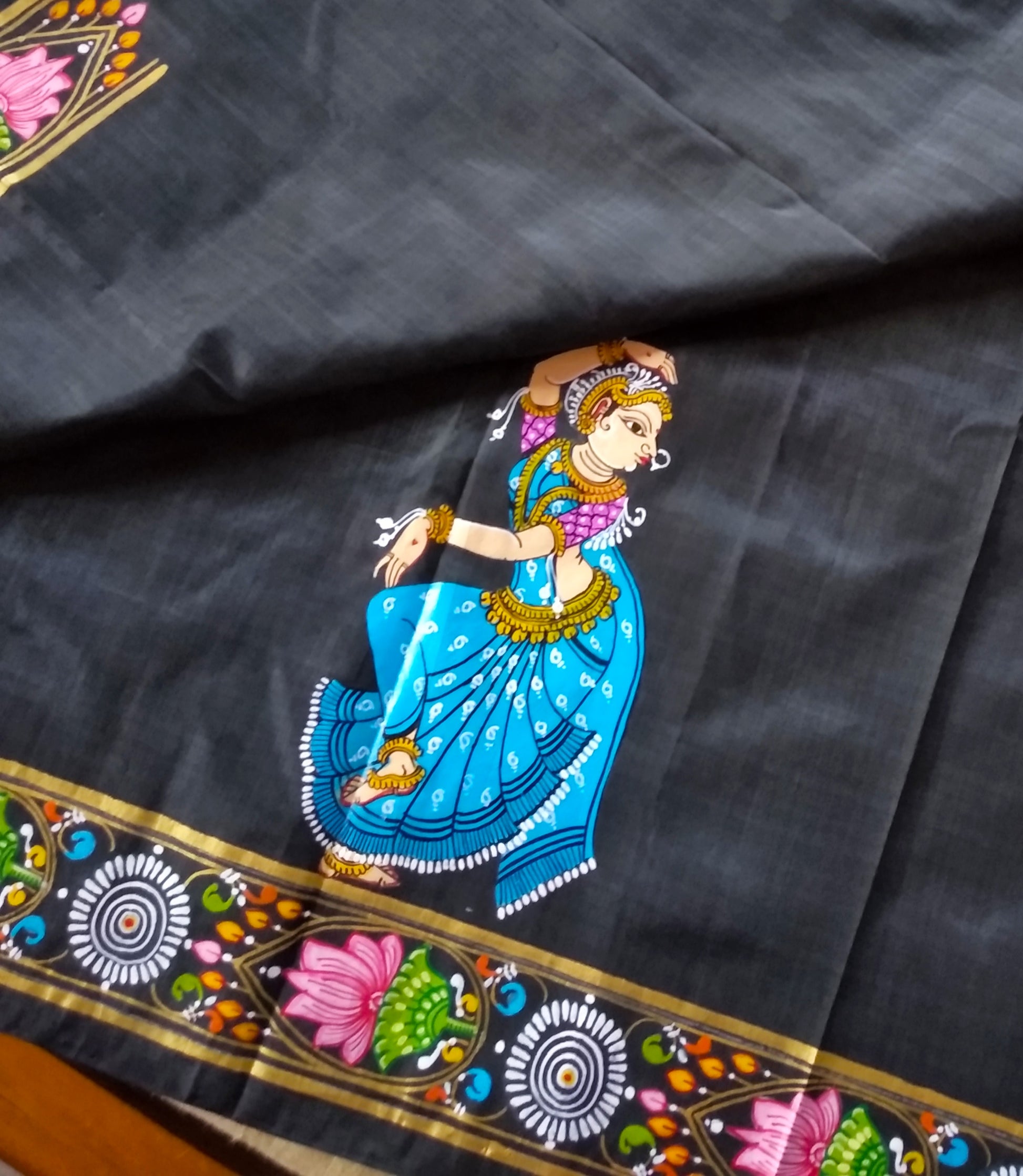Pallu – 1.25 meters of painting/ Border work with gopis dancing