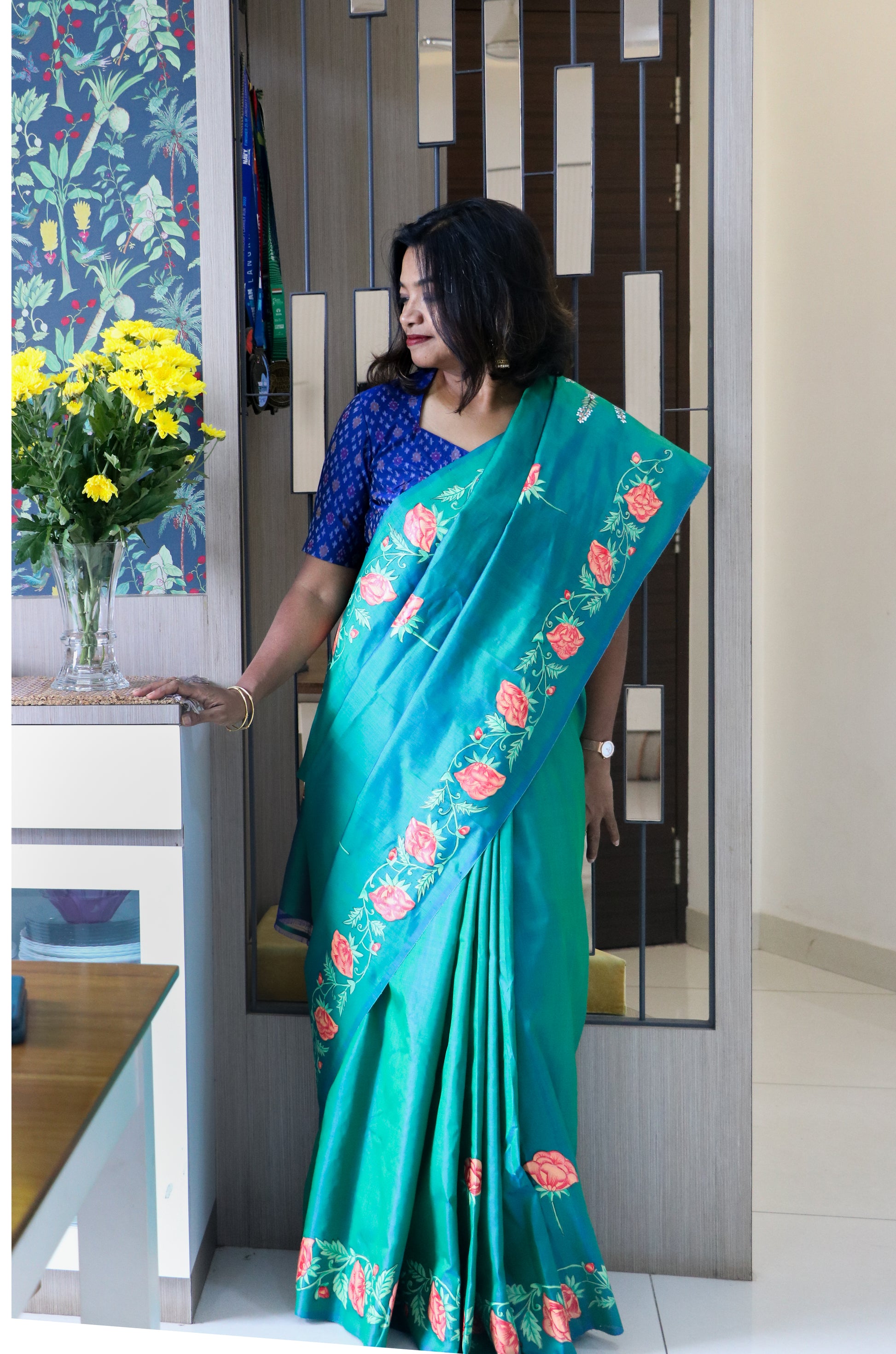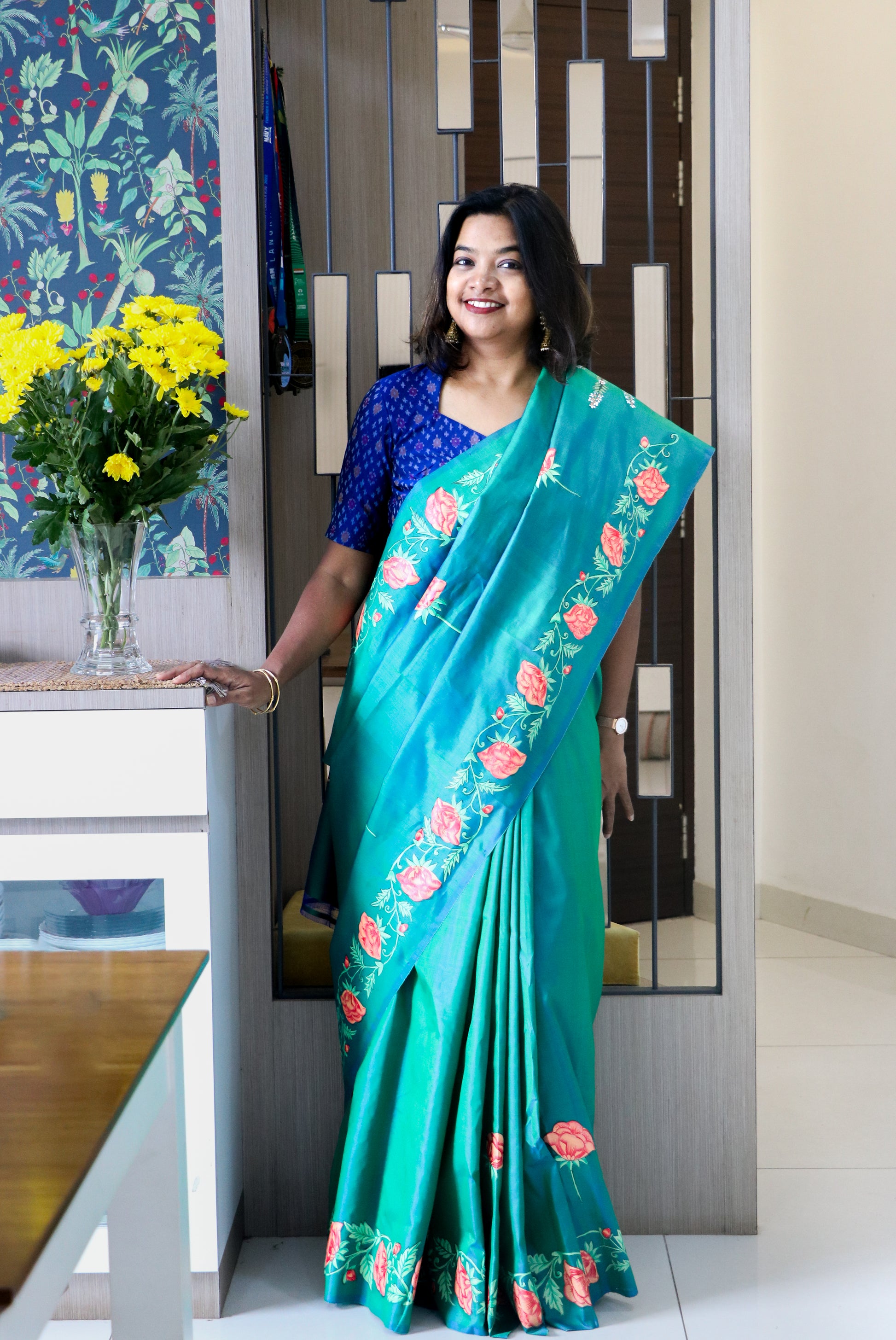 Product care: Hand painted sarees are dry cleaned and ironed on the reverse side of the painting