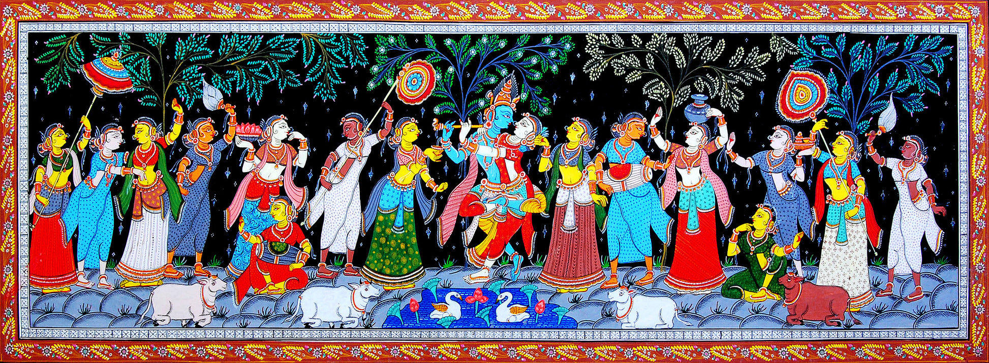 Patachitra style of painting - an ancient art form originating from Puri, Orissa, where paintings depict stories & the glory of Lord Jagannath (Krishna).