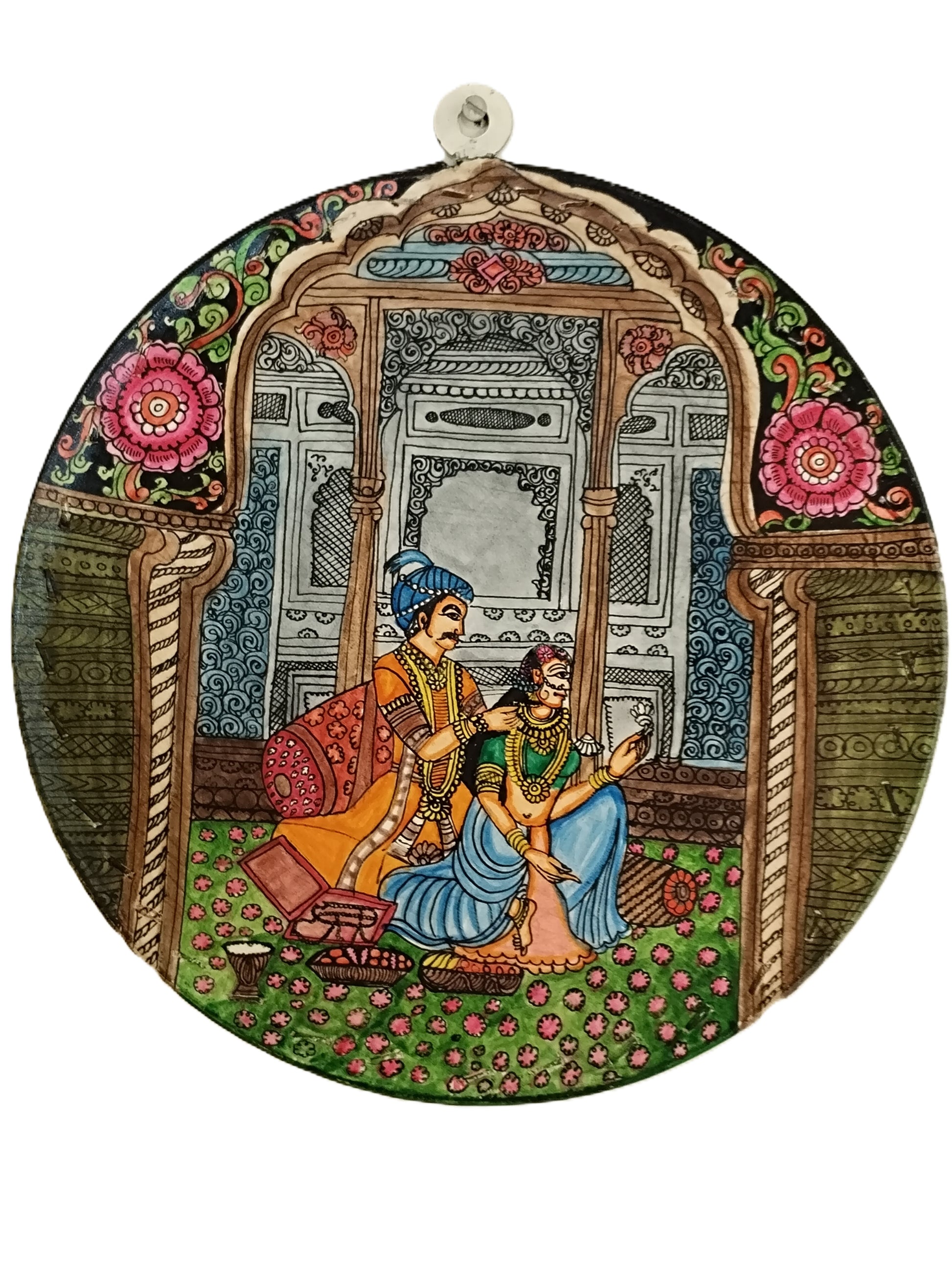 Rajasthani Hand-Painted Leather Wall Plate - King & Queen