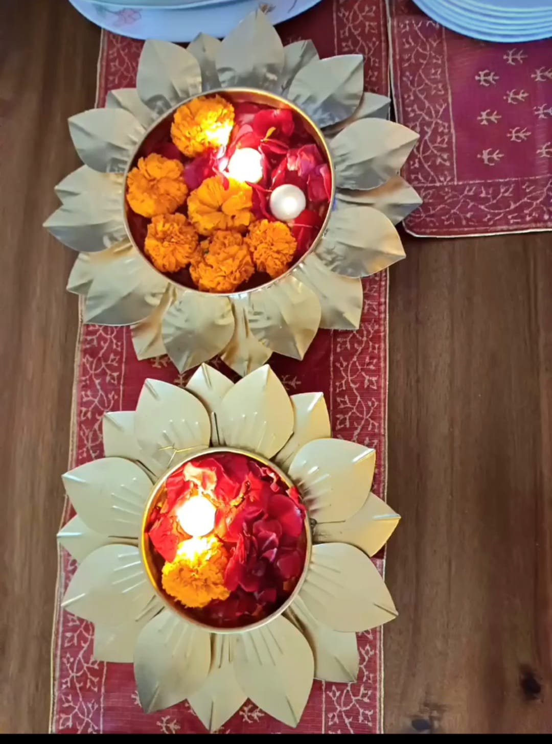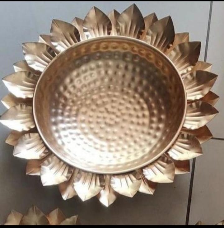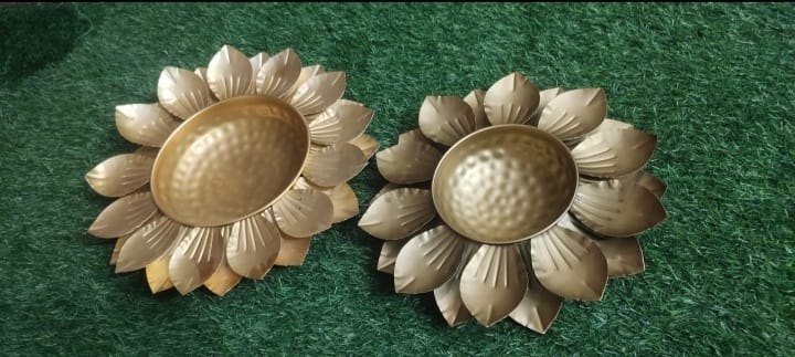 These are handmade metal Urlis in floral shape to hold up your diyas.