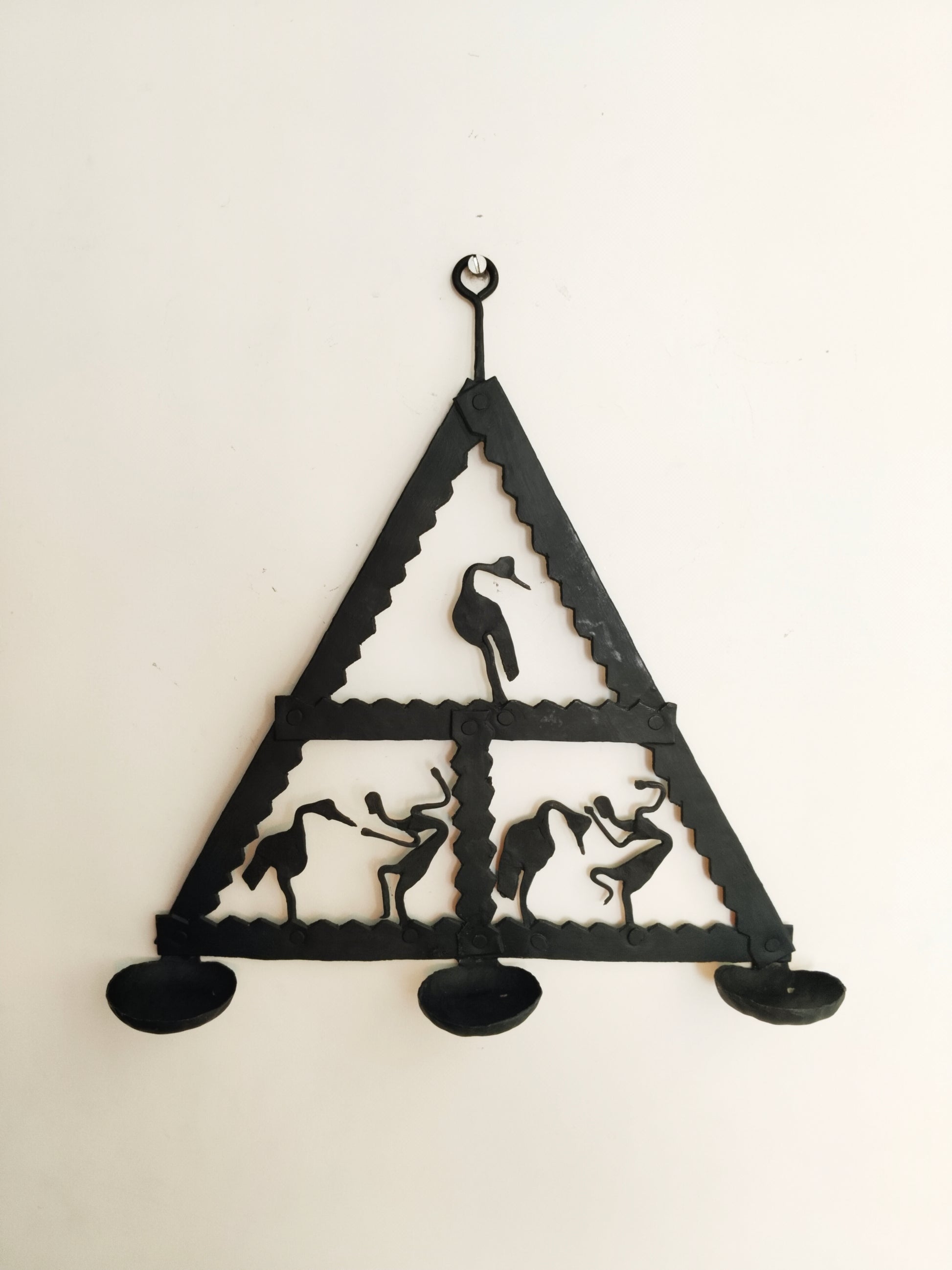 Single Panel wrought iron laman diya - Triangle - T - 3 Candles