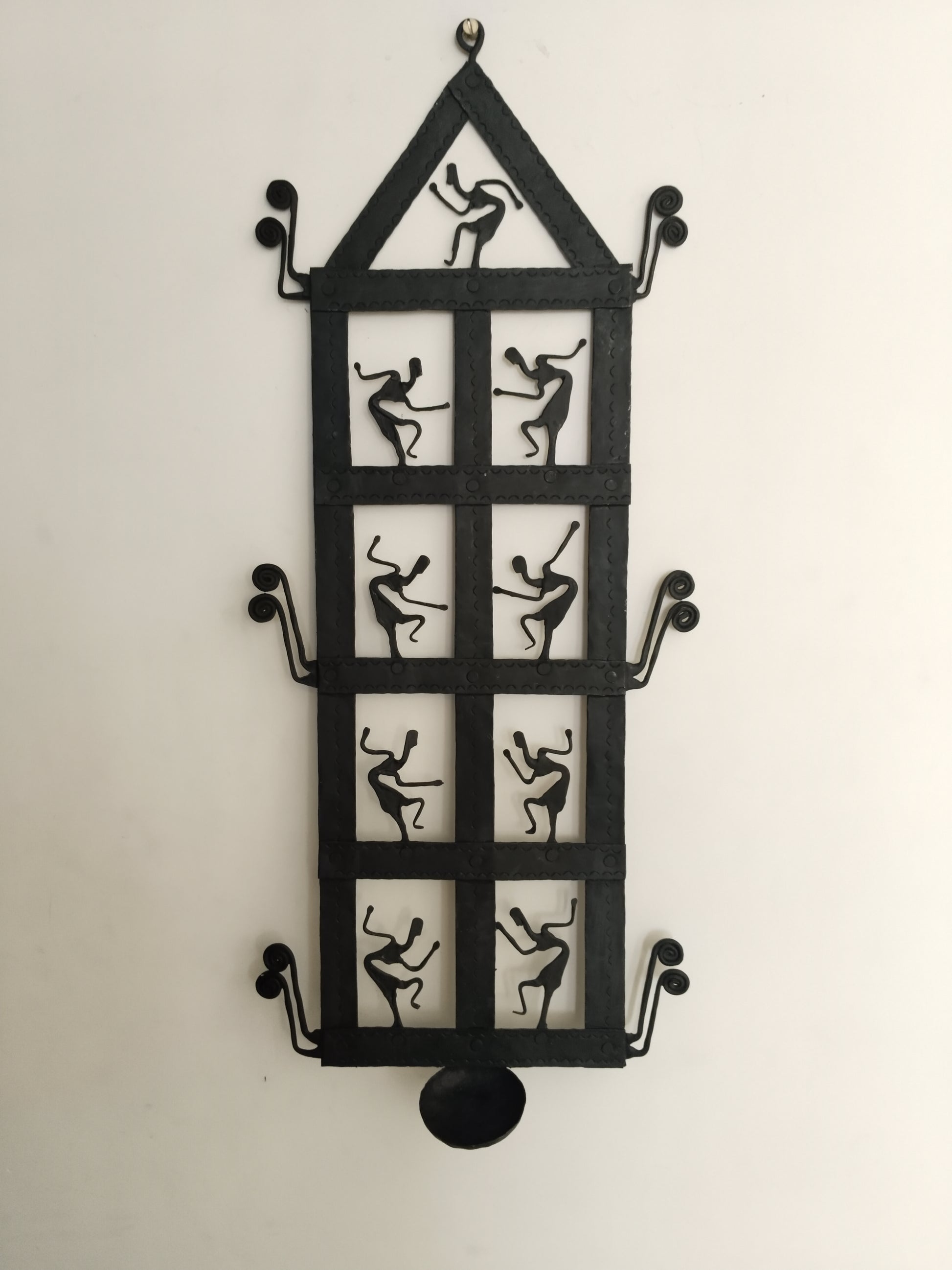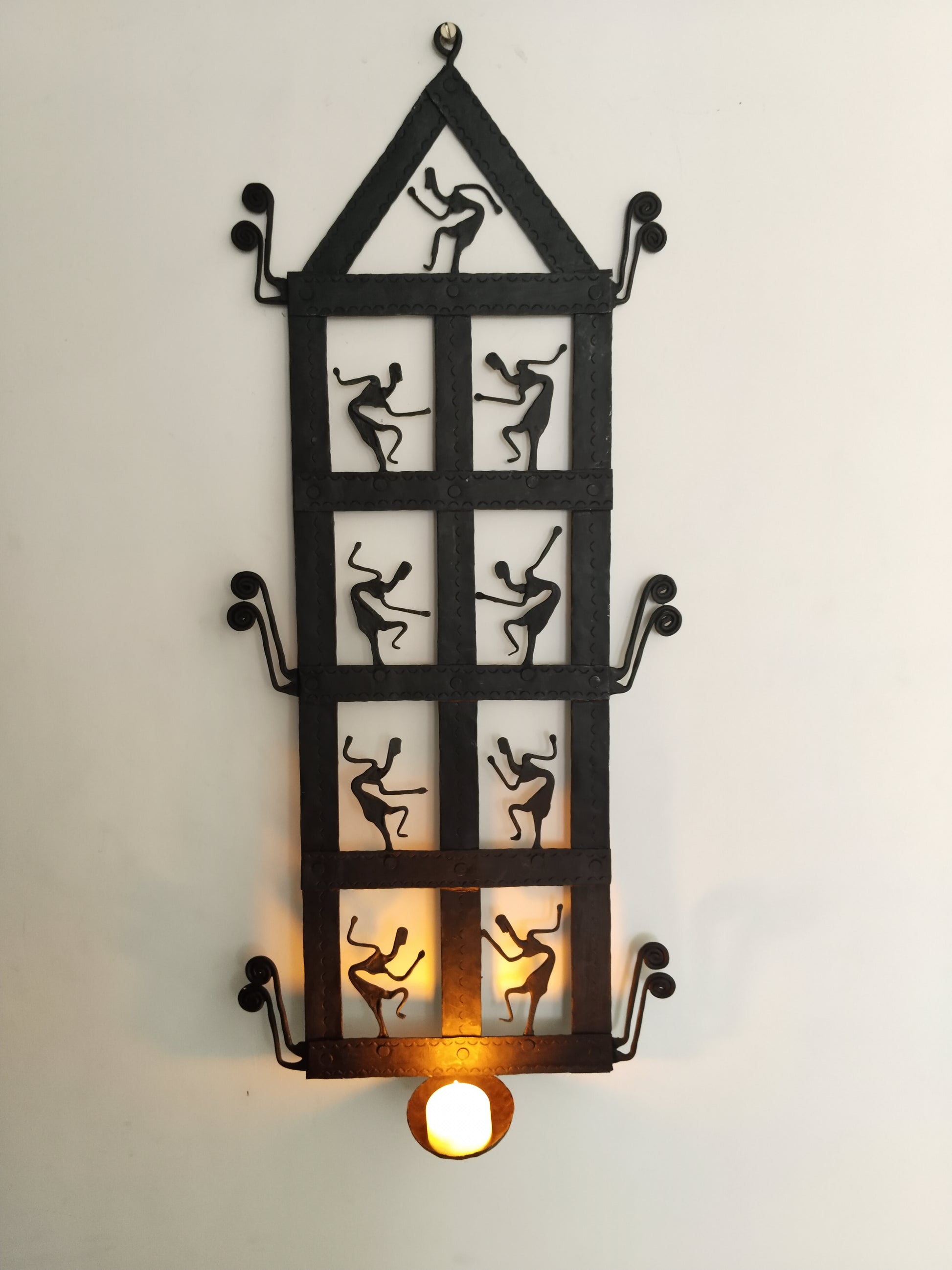 This is a Beautiful tribal craft form beating up wrought iron to give them human and animal shapes that are then welded onto a frame to which diyas (tea-light) holders are added.