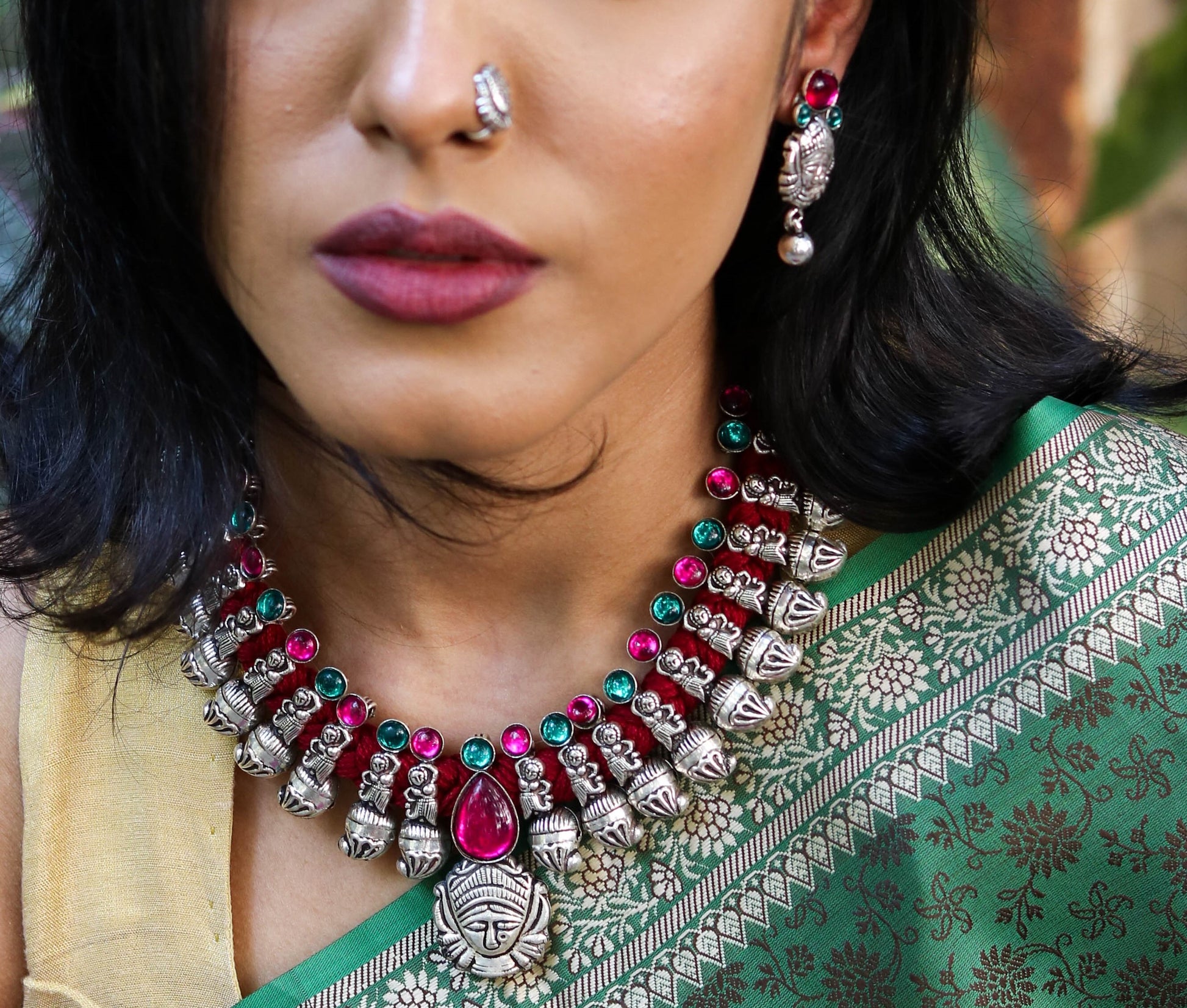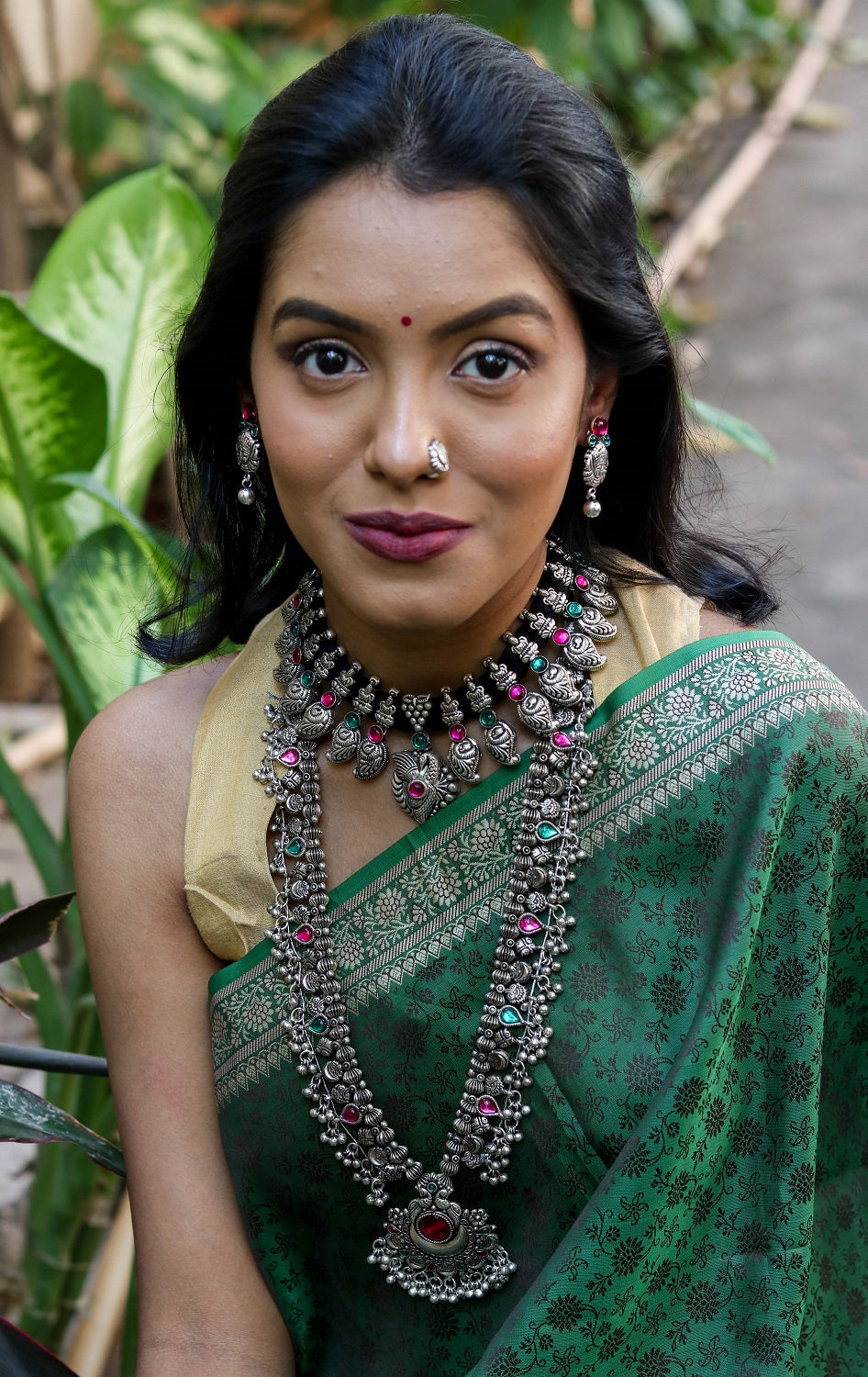 Option 2 - Our emerald green durga beads necklace is a winner to ensure you stand out in the crowd.