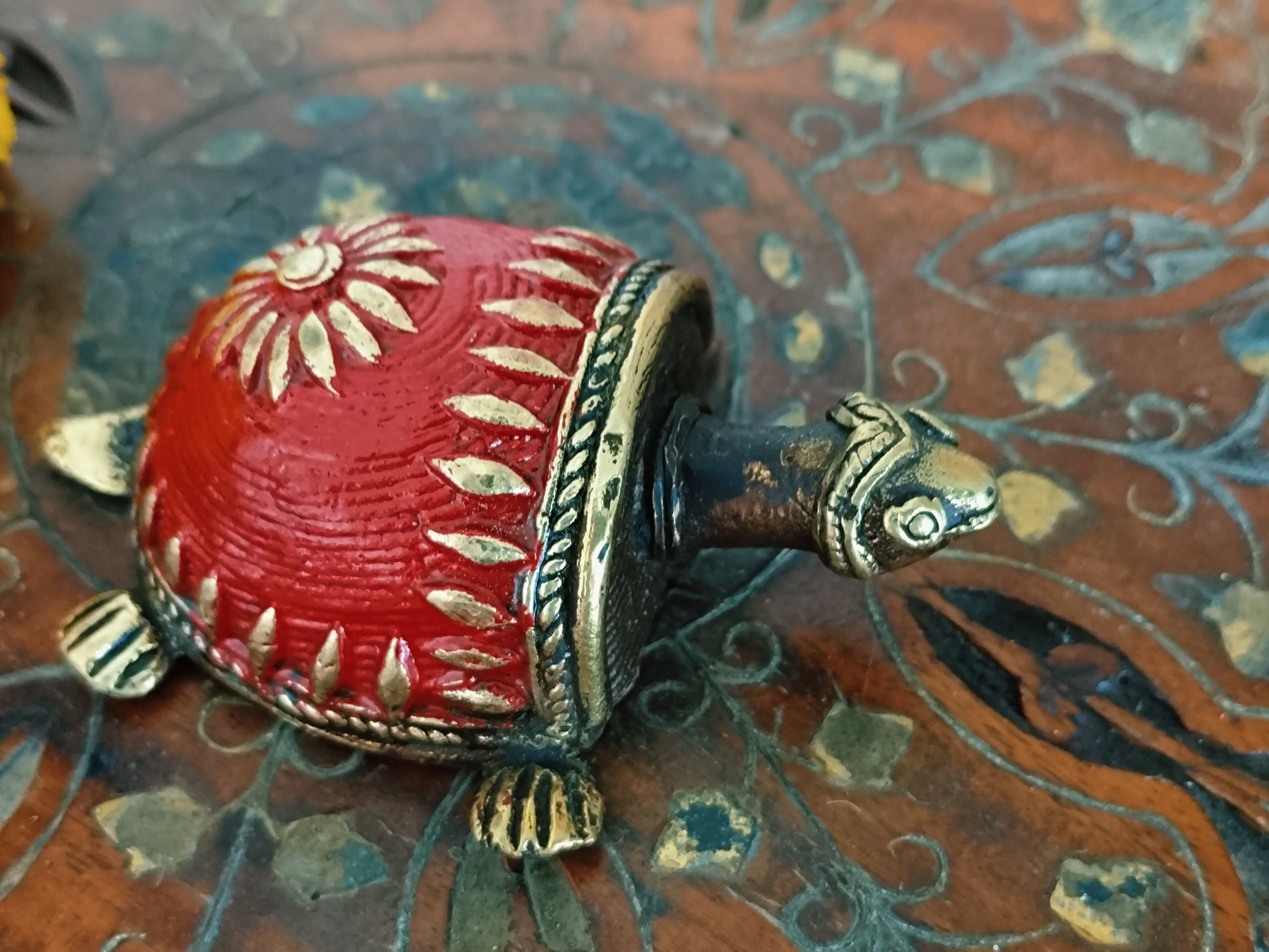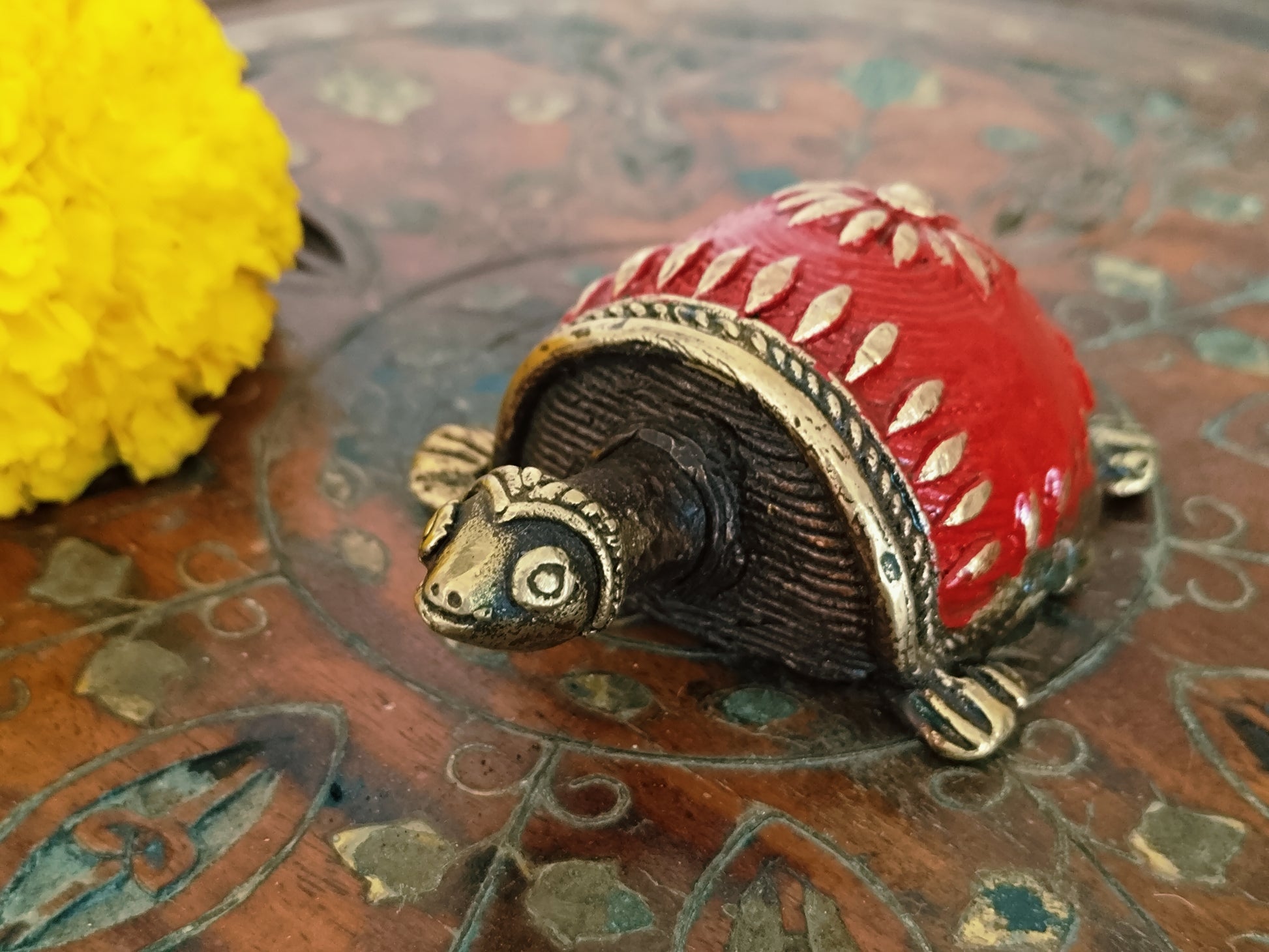 Vastu Dhokra Brass Red Tortoise Figurine - small