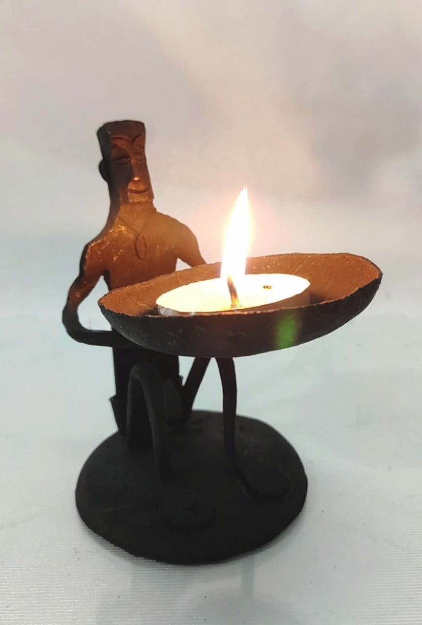 Wrought Iron Bastar Man Diya - in front