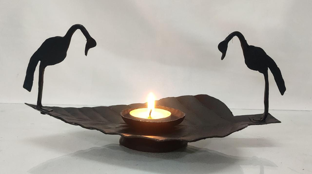 This is a Beautiful tribal craft form beating up wrought iron to give them human and animal shapes that are then welded onto a frame to which diyas (tea-light) holders are added.